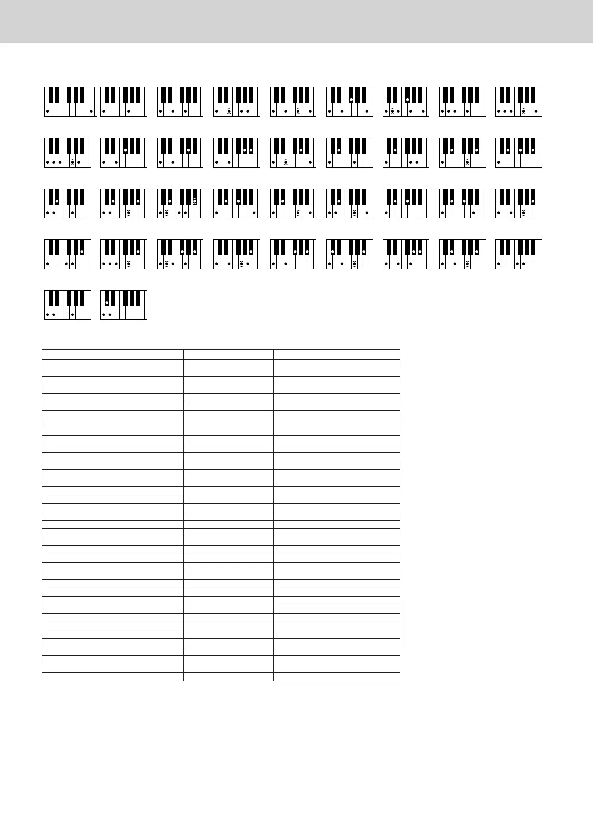 d’accords reconnus en mode Fingered / Tipos de acordes reconocidos en el modo Fingered (digitado)