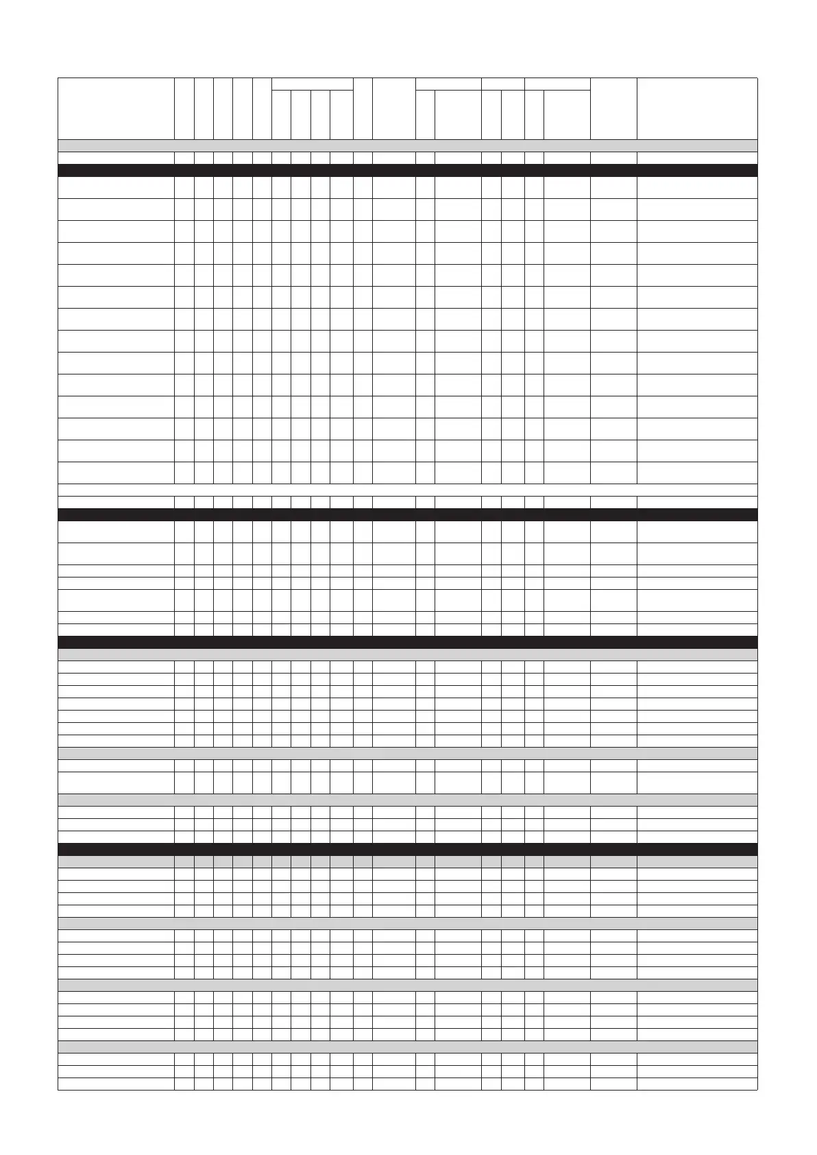Parameter Chart / Parametertabelle / Tableau des paramètres / Gráfico de parámetros