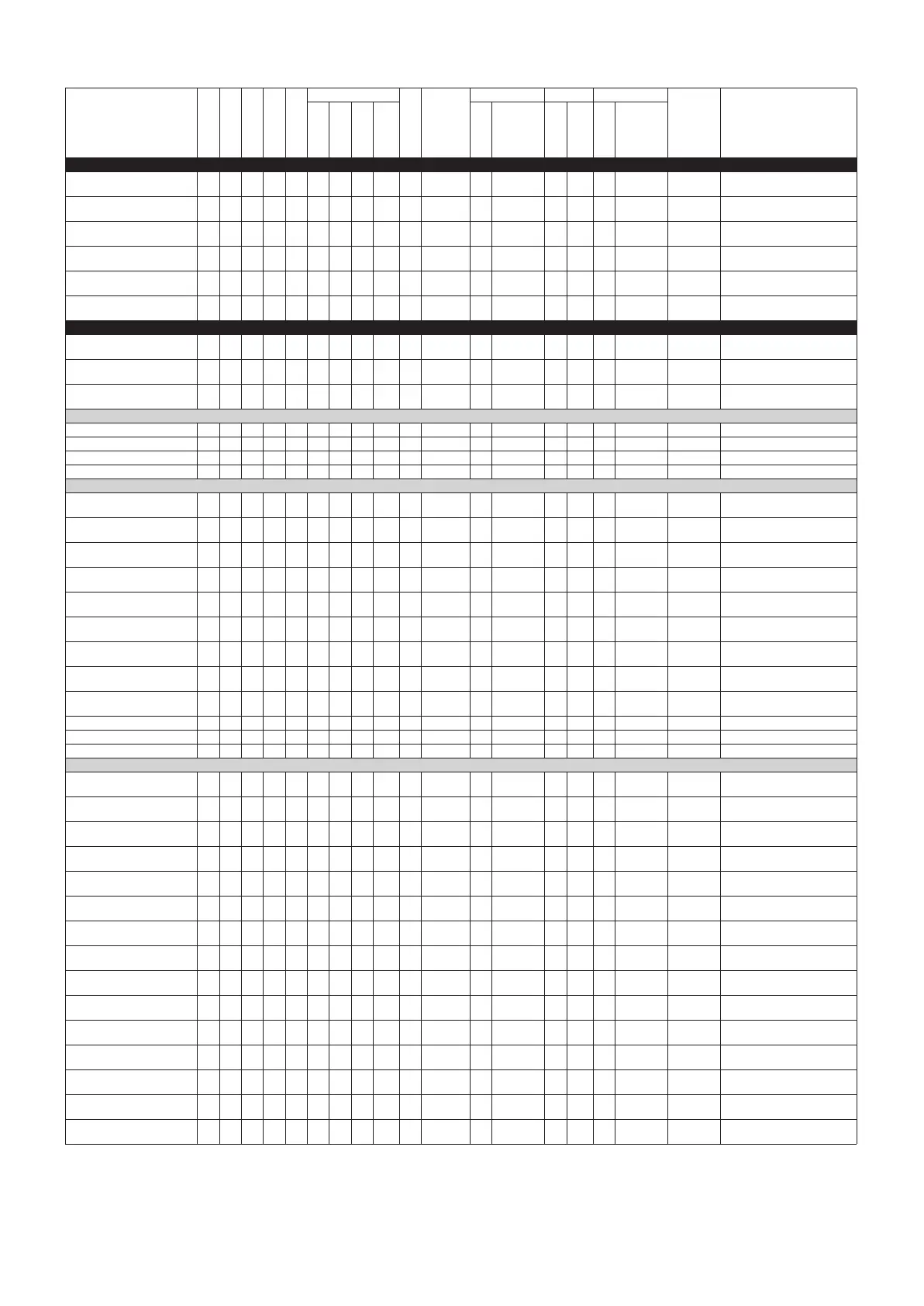 Parameter Chart / Parametertabelle / Tableau des paramètres / Gráfico de parámetros