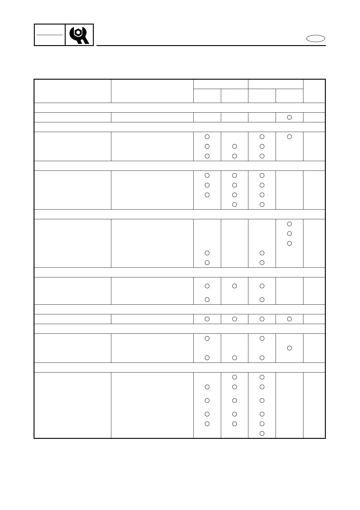 The following chart should be considered strictly as a guide to general maintenance intervals.
