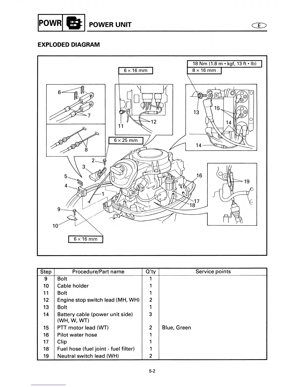 Yamaha 40X - Power Unit Exploded Diagram;Removal and Installation Chart (Cont)