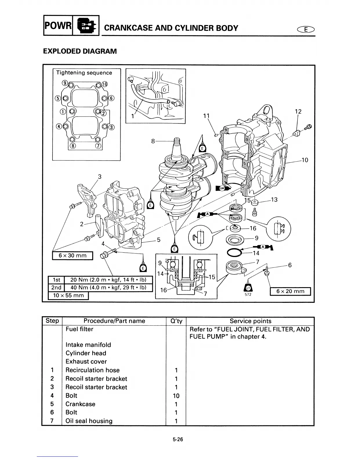 Yamaha 40X - Crankcase and Cylinder Body Exploded Diagram;Removal and Installation Chart (Cont)