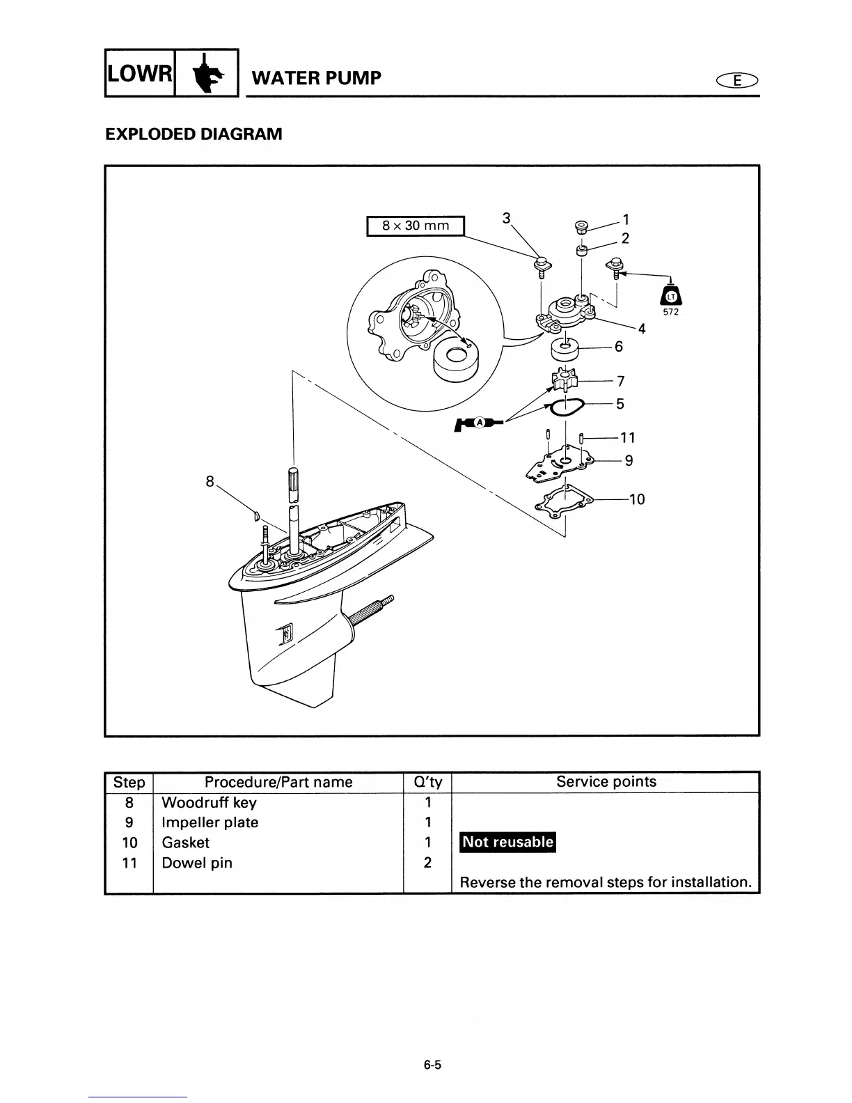 Yamaha 40X - Water Pump Exploded Diagram;Removal and Installation Chart (Cont)