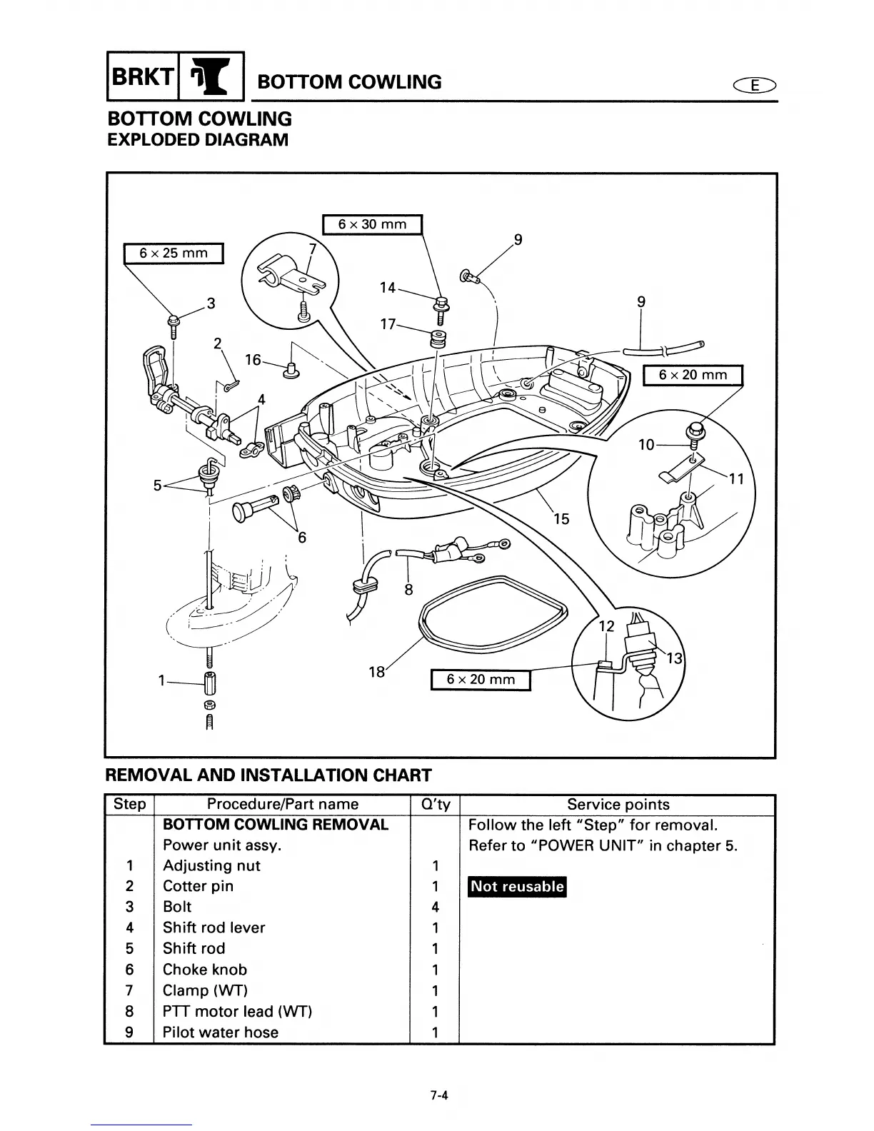 Yamaha 40X - Bottom Cowling Exploded Diagram;Removal and Installation Chart