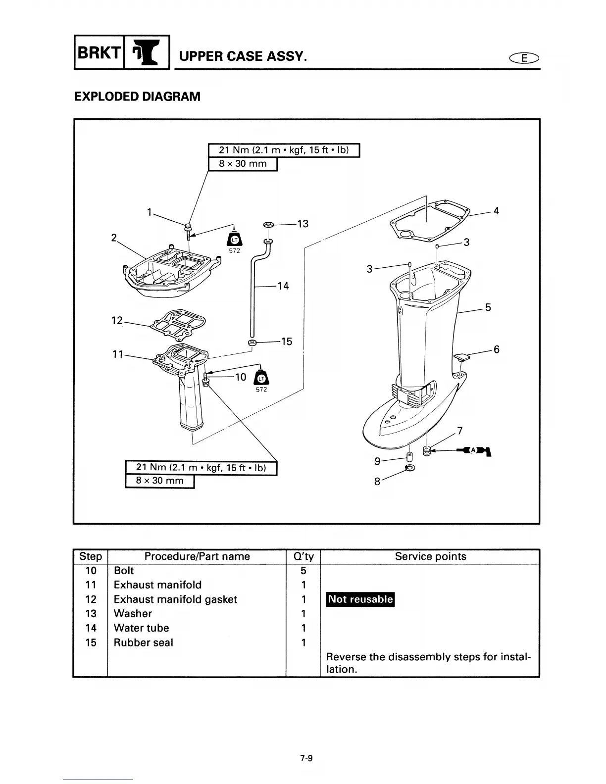 Yamaha 40X - Upper Case Assy Exploded Diagram;Removal and Installation Chart (End)