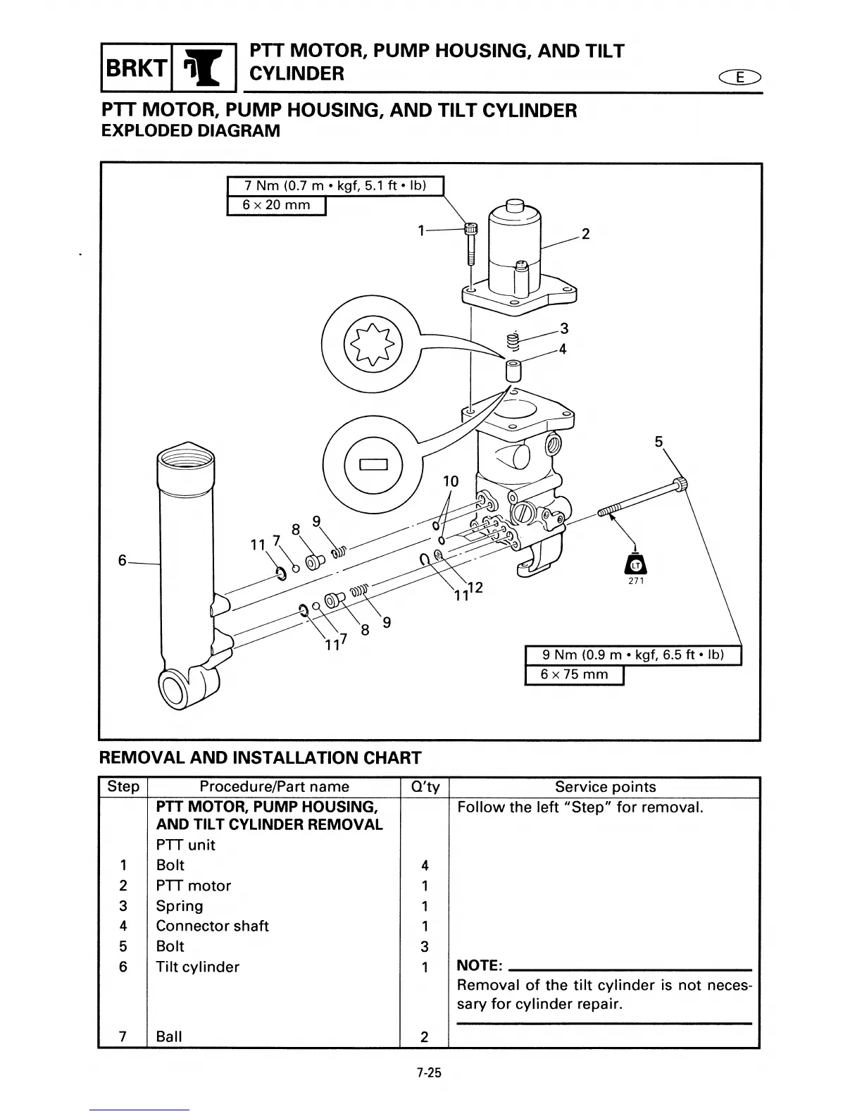 Yamaha 40X - PTT Motor, Pump Housing, and Tilt Cylinder Exploded Diagram;Removal and Installation Chart