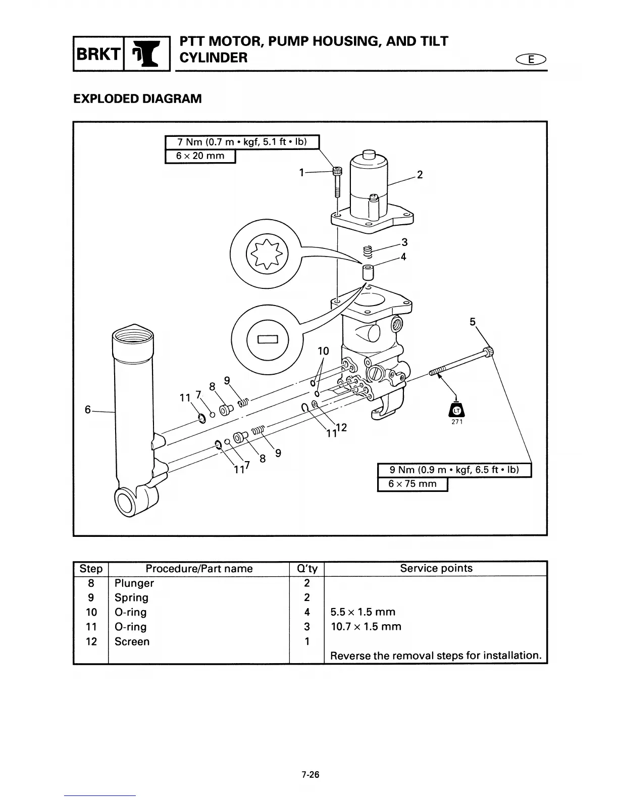 Yamaha 40X - PTT Motor, Pump Housing, and Tilt Cylinder Exploded Diagram;Removal and Installation Chart (Cont)