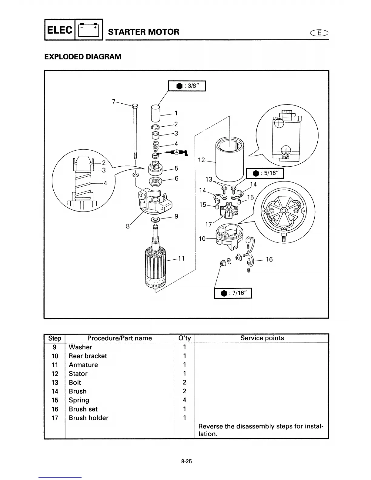 Yamaha 40X - Starter Motor Exploded Diagram;Removal and Installation Chart (Cont)