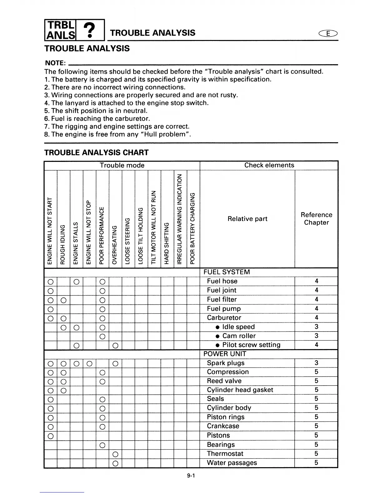 Yamaha 40X - Trouble Analysis; Trouble Analysis Chart