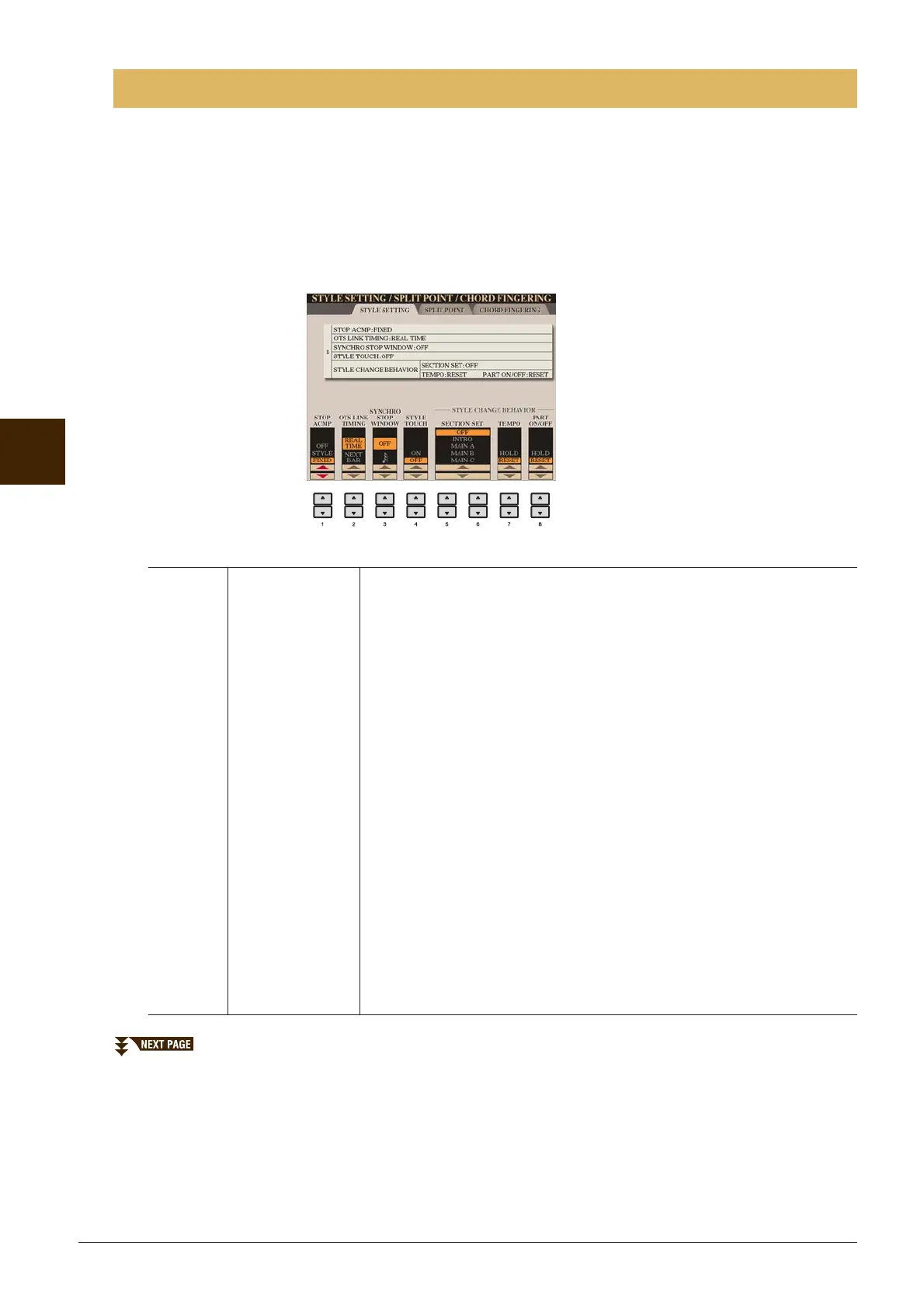 The instrument has a variety of Style playback functions which can be accessed in the display below.