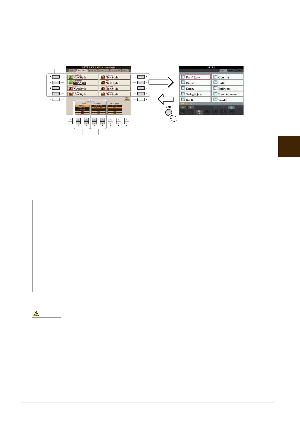 The edited Style will be lost if you change to another Style or turn the power to the instrument off without executing the Save operation.