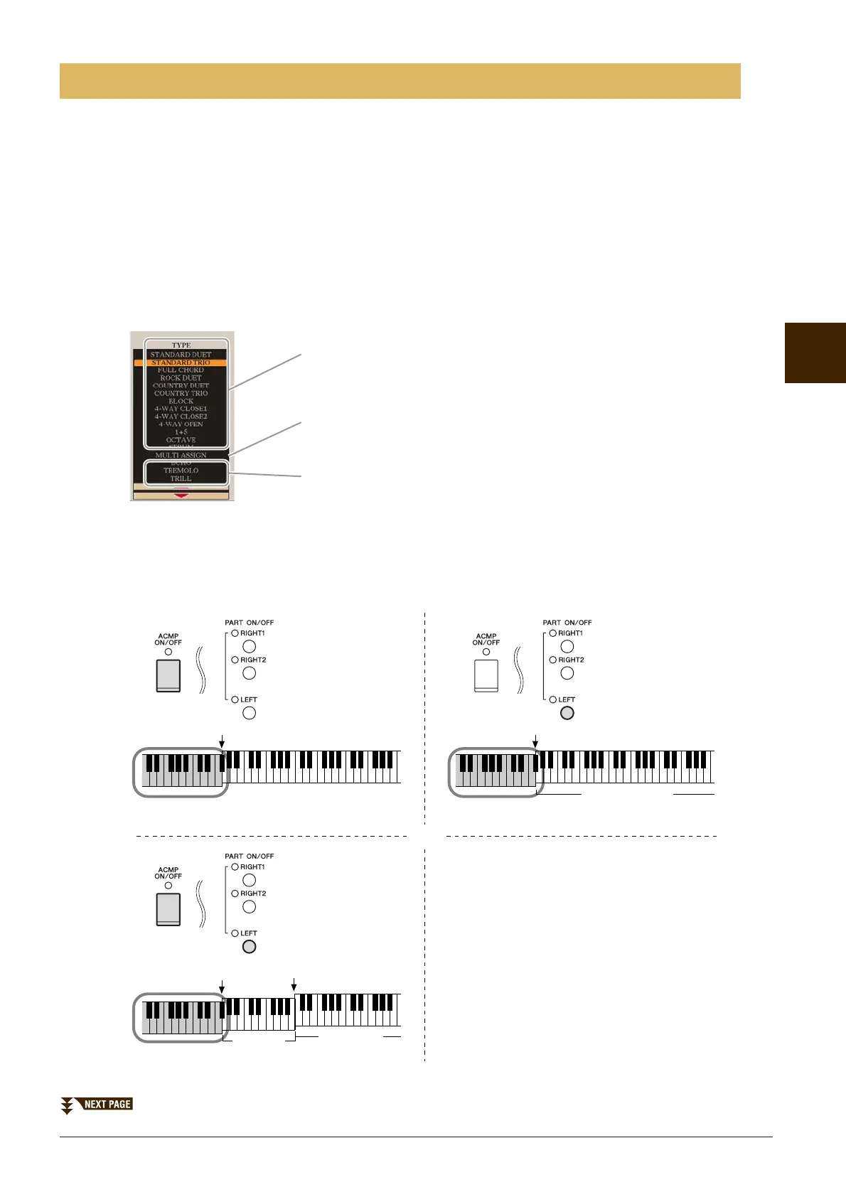 hand section of the keyboard according to the type selected above and the chord specified in the chord