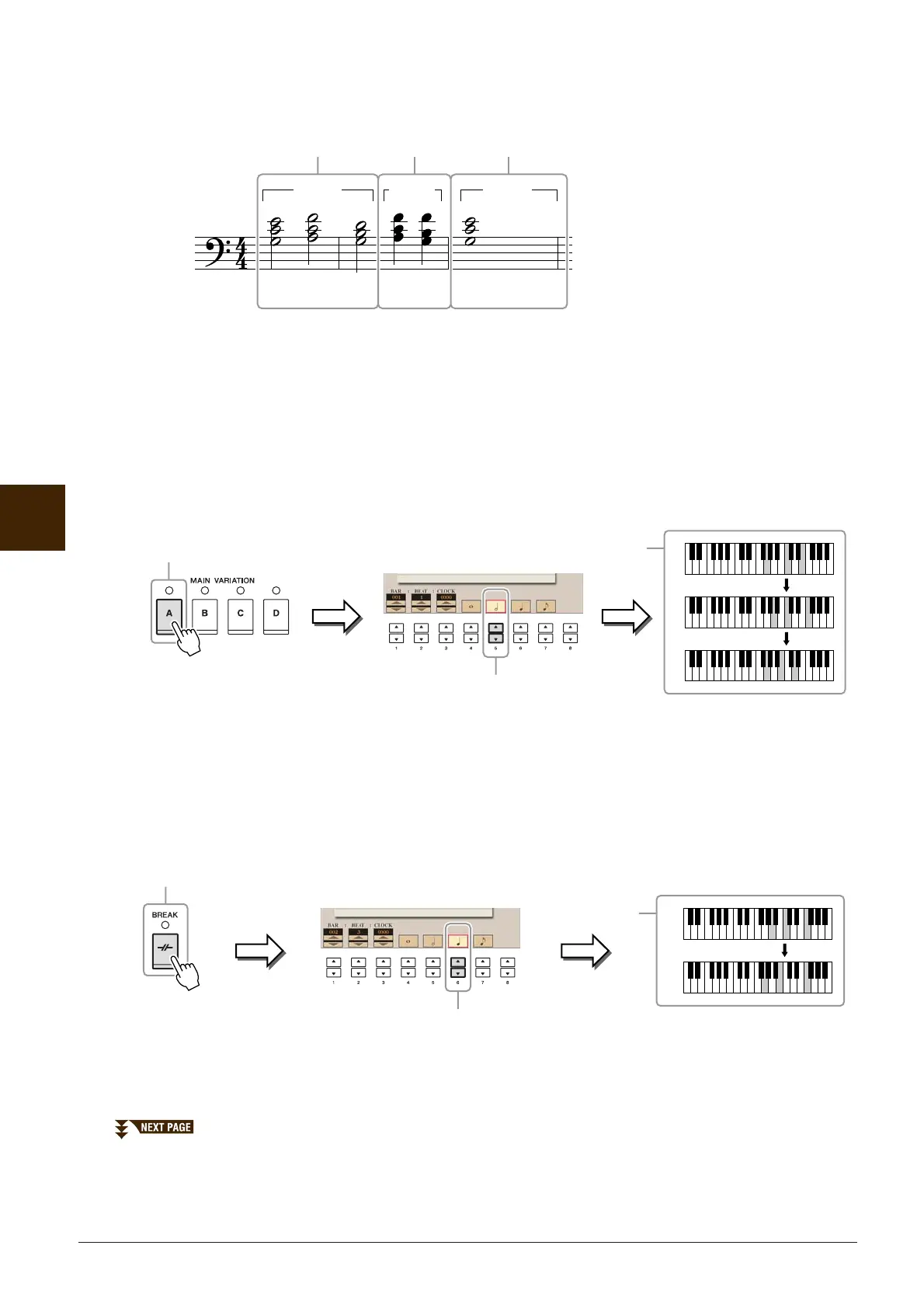 NOTE To enter fill-ins, turn the [AUTO FILL IN] button to ON, and simply press the desired MAIN VARIATION [A]–[D] button.