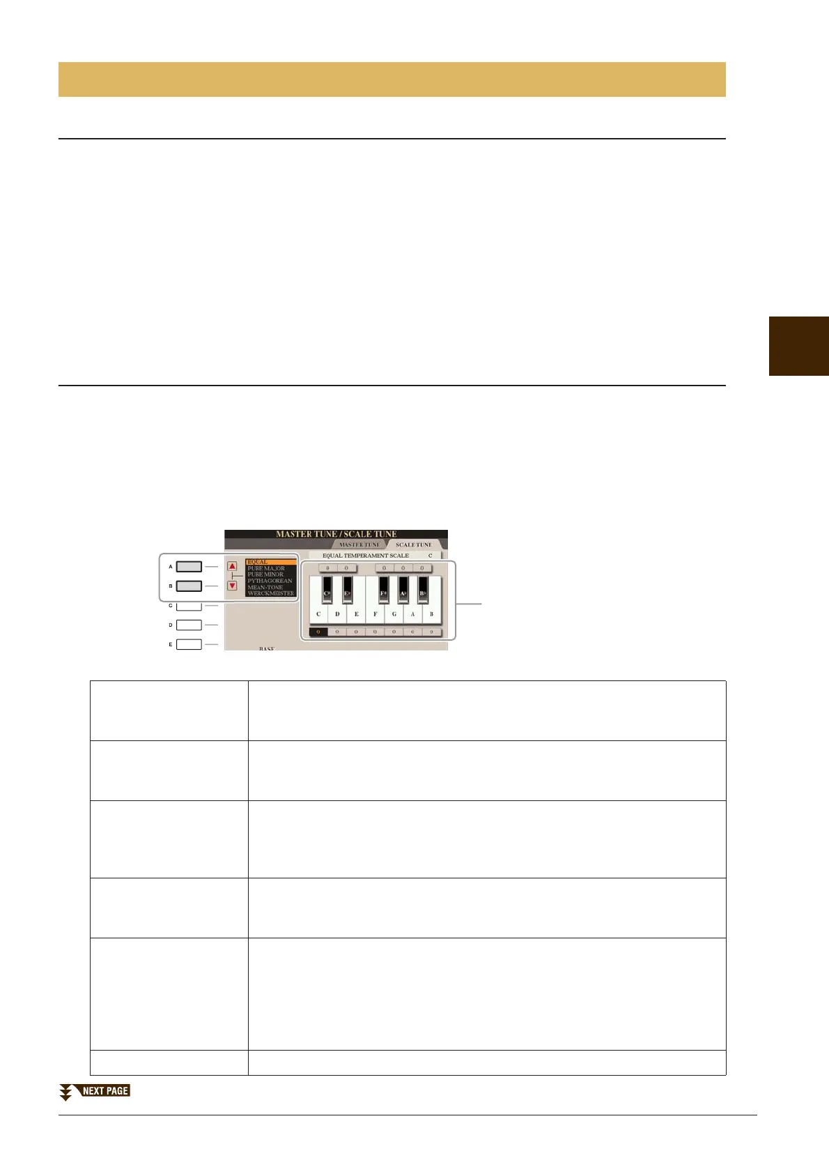 [FUNCTION] → [A] MASTER TUNE/SCALE TUNE → TAB [E][F] SCALE TUNE