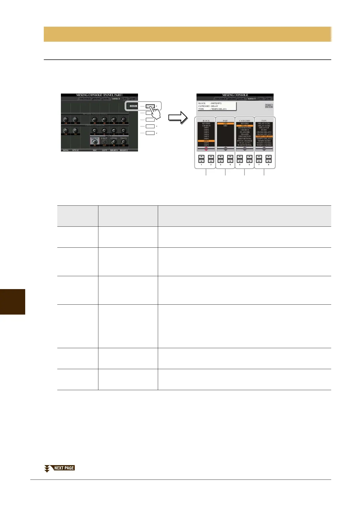 1 Press the [F] (TYPE) button in the EFFECT Page of the Mixing Console display.