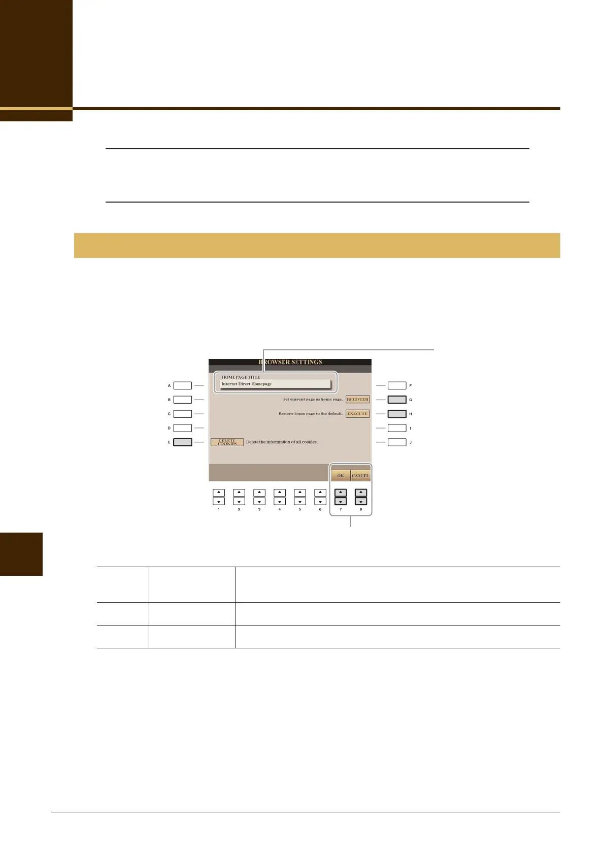 [INTERNET] → [5 ▼] SETTING → [D] BROWSER SETTINGS