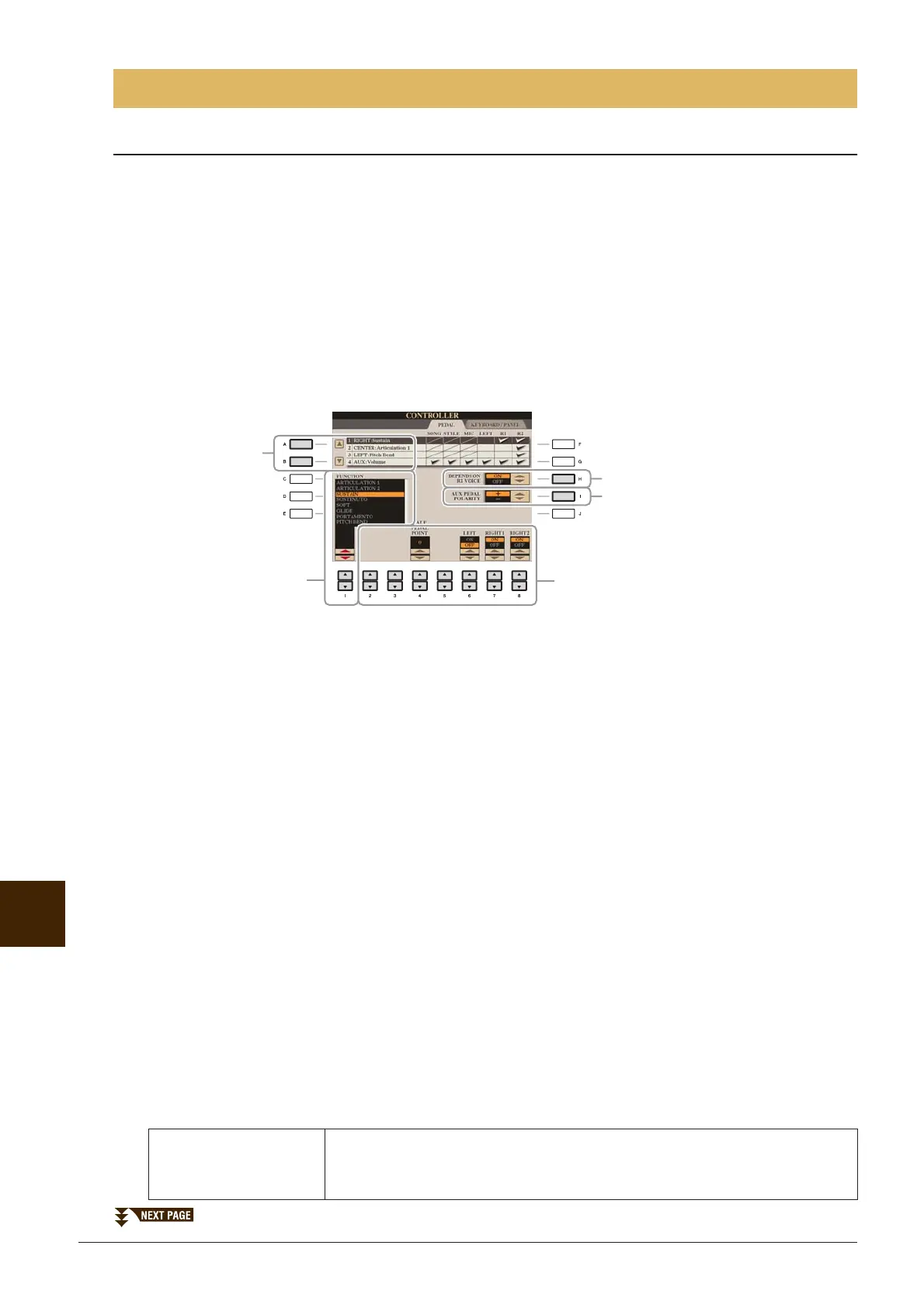 [FUNCTION] → [D] CONTROLLER → TAB [E][F] PEDAL