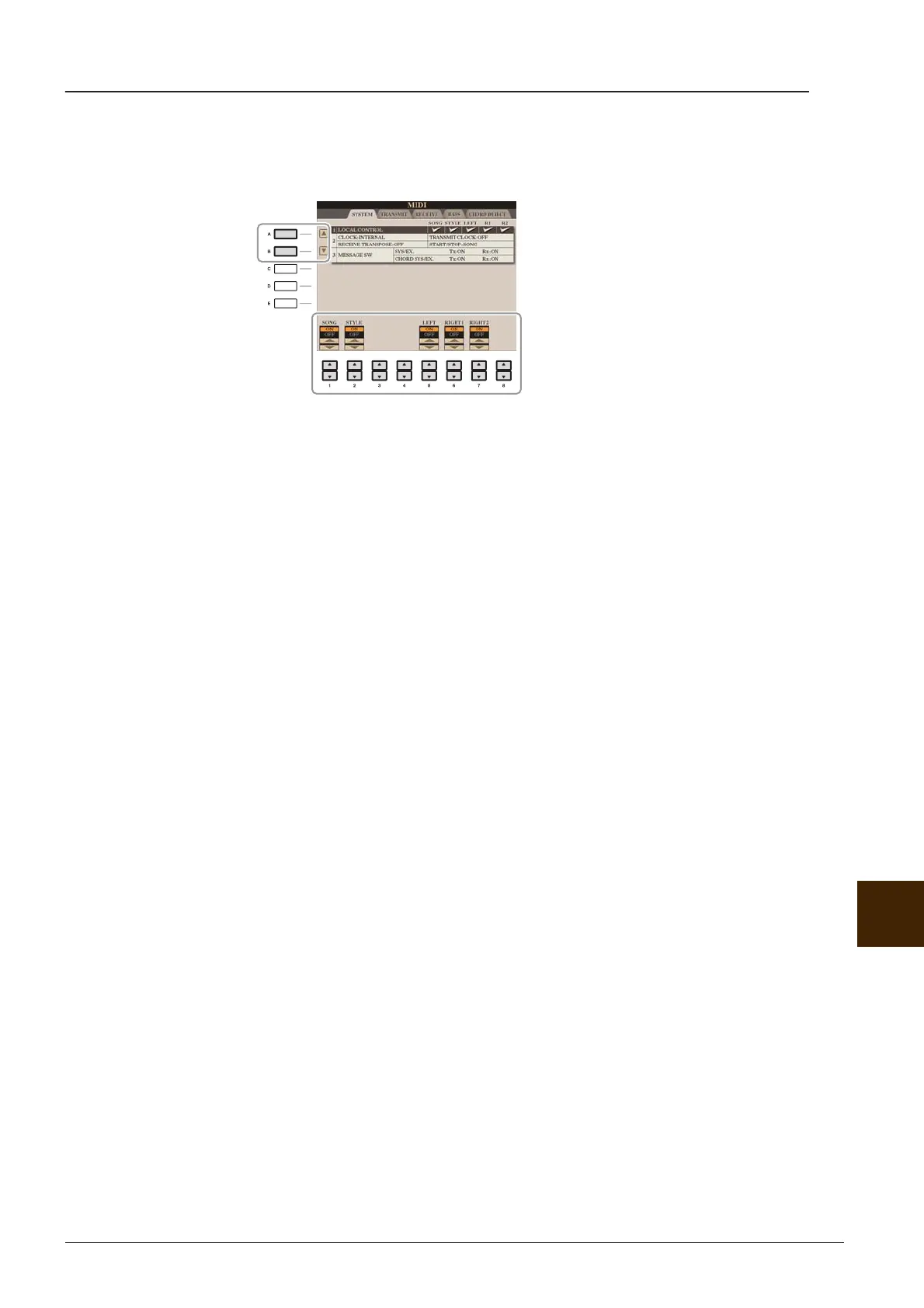 The “Tx” setting turns MIDI transmission of MIDI System Exclusive messages on or off. The “Rx” setting