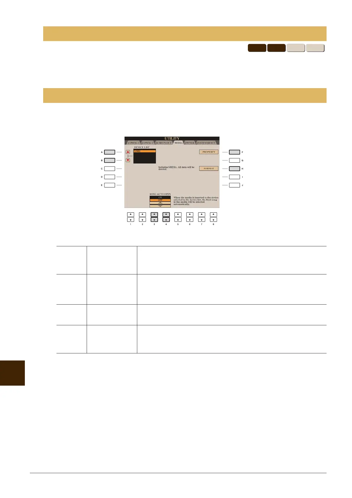 [H] FORMAT Formats the media selected by [A]/[B] buttons. Refer to the Owner’s