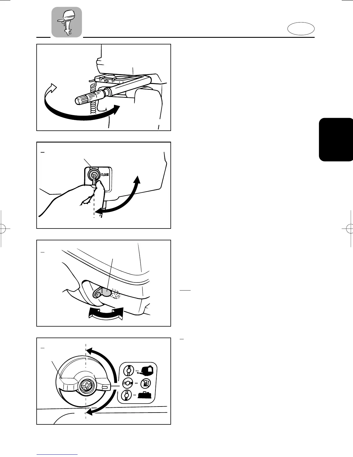 Moving the tiller handle sideways to