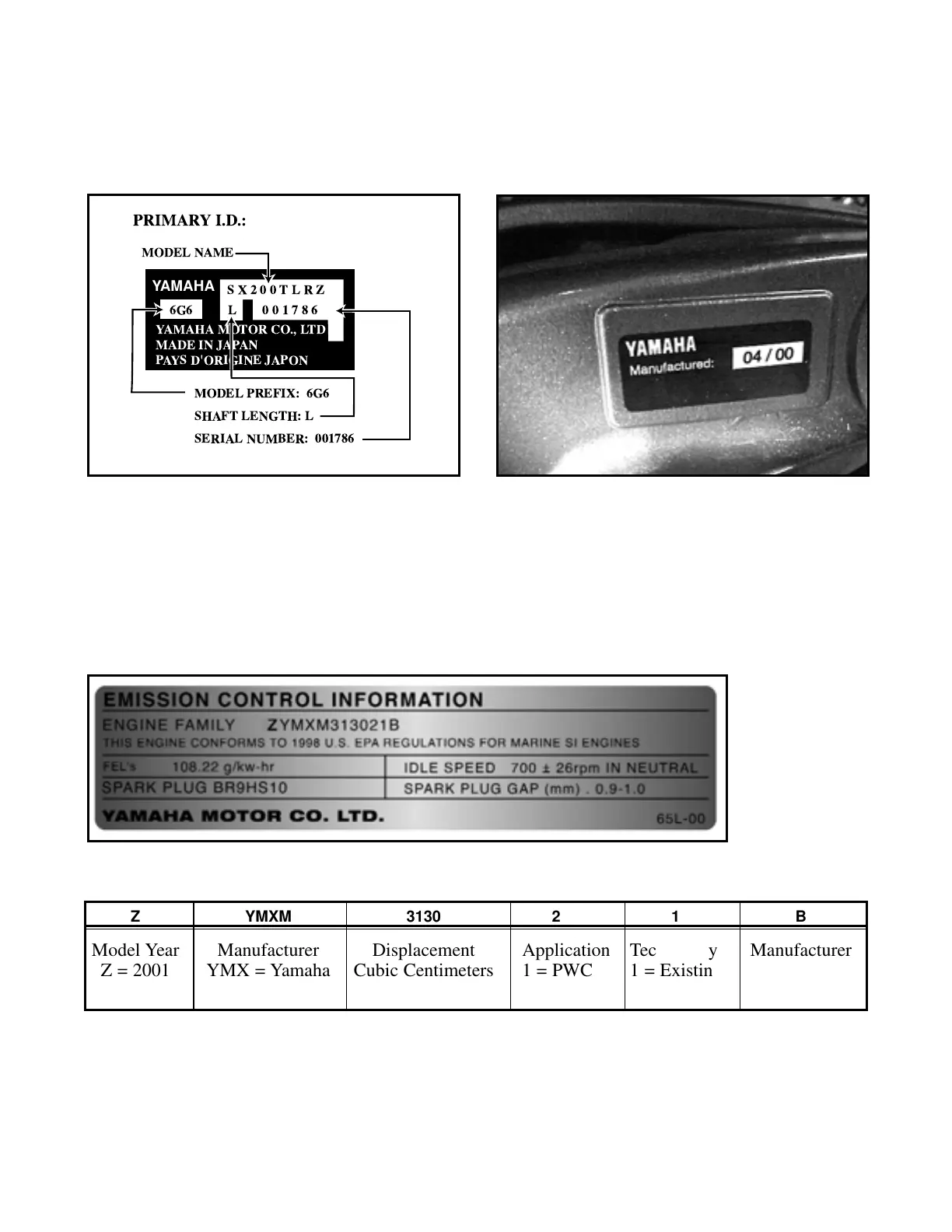 Z = 2001 YMX = Yamaha Cubic Centimeters 1 = PWC 1 = Existing Specification