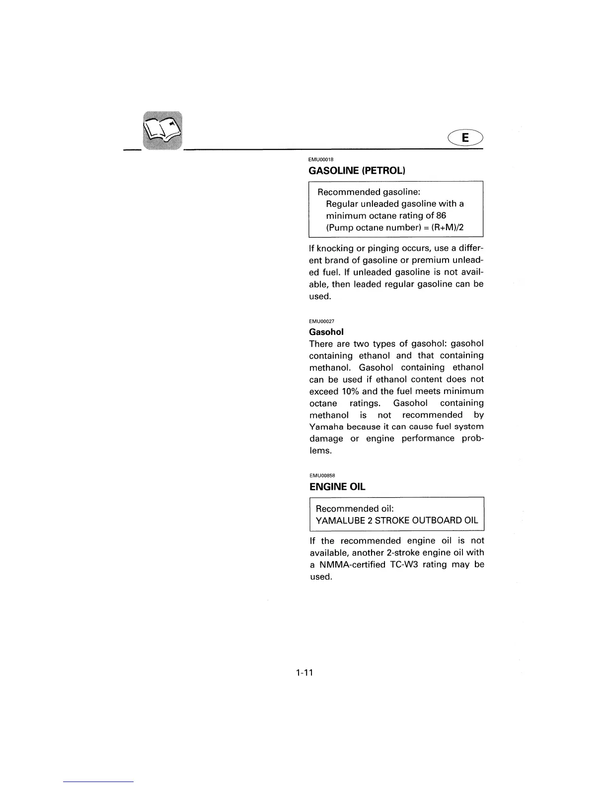 Yamaha 8B - Gasoline (Petrol); Engine Oil; Gasohol