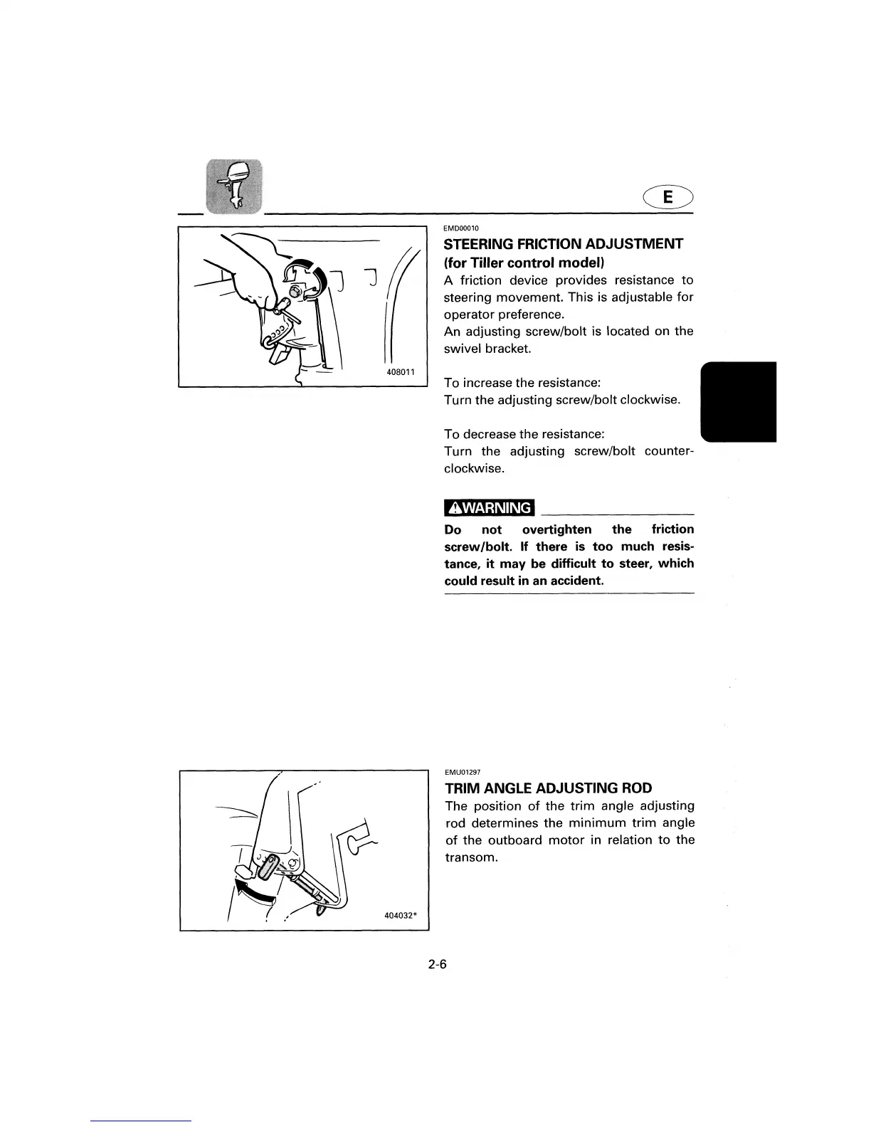 Yamaha 8B - Steering Friction Adjustment; Trim Angle Adjusting Rod