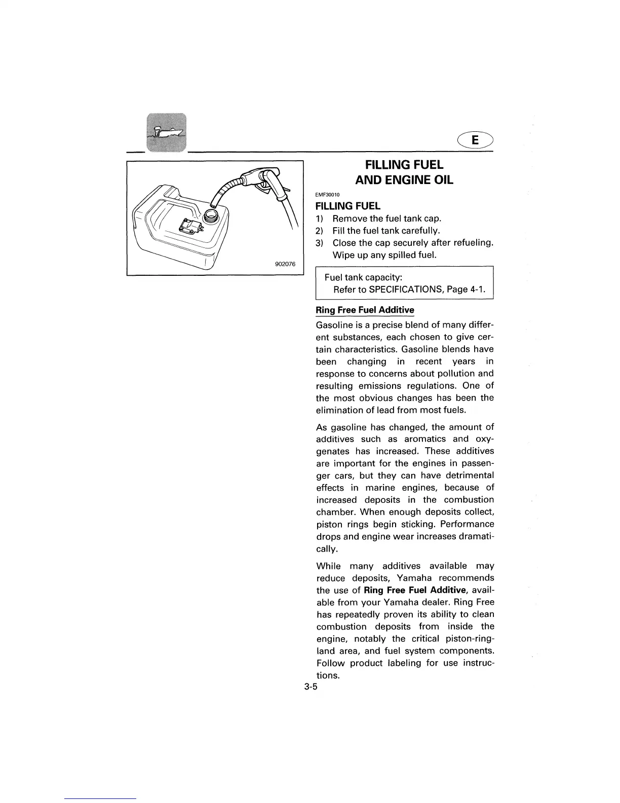 Yamaha 8B - Filling Fuel and Engine Oil; Ring Free Fuel Additive