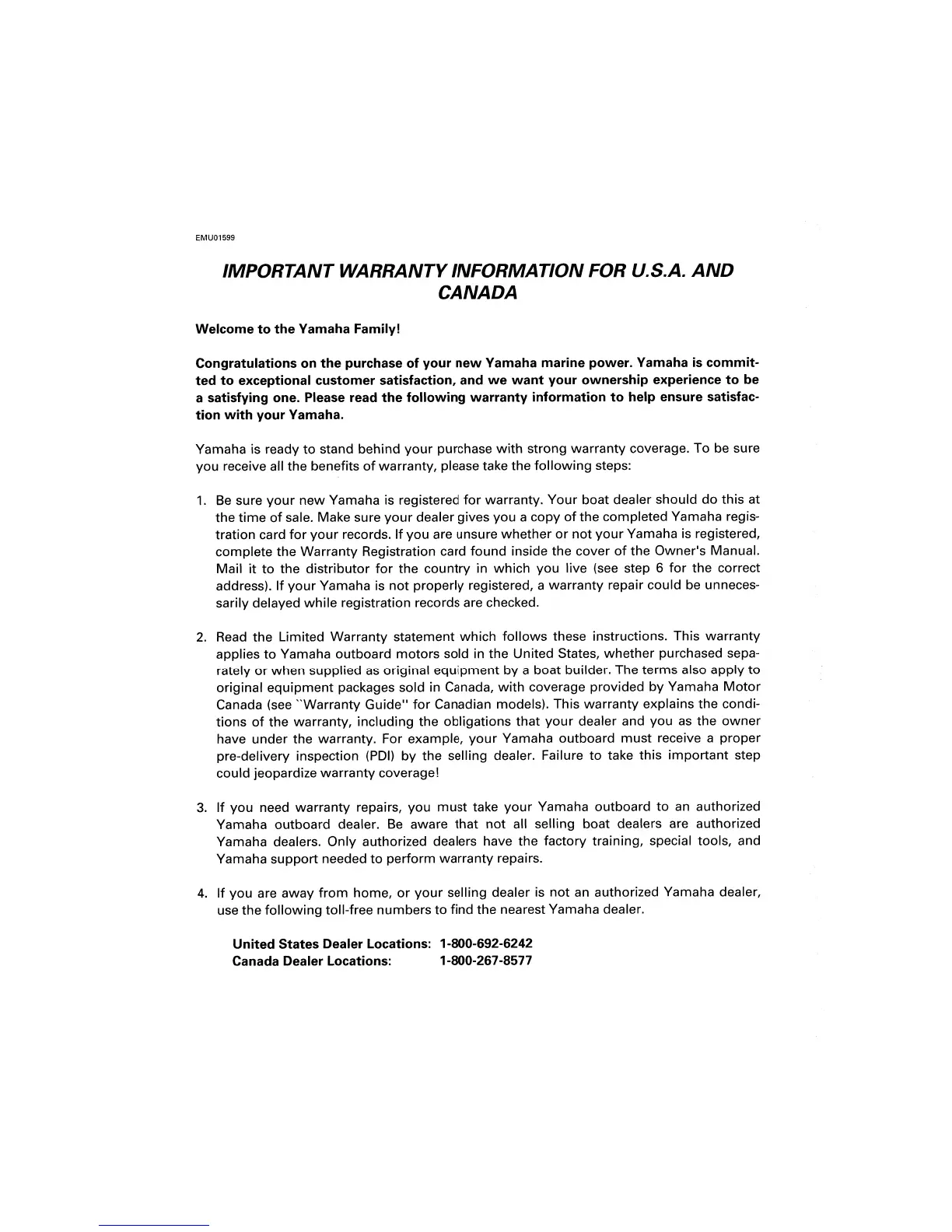 Yamaha 8B - Important Warranty Information; Warranty Registration and Coverage; Obtaining Warranty Repairs