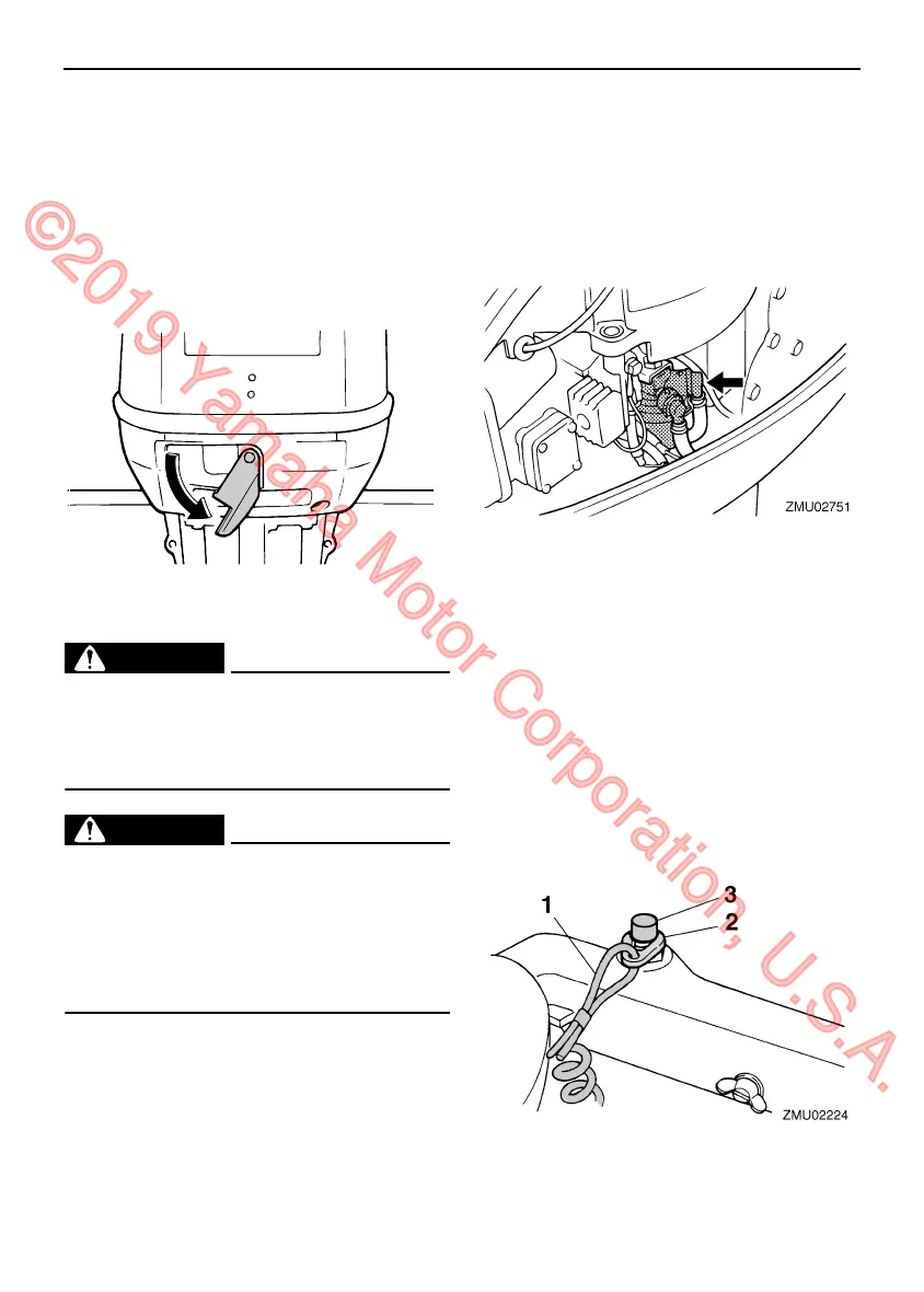 gine top cowling, release the lock lever and lift