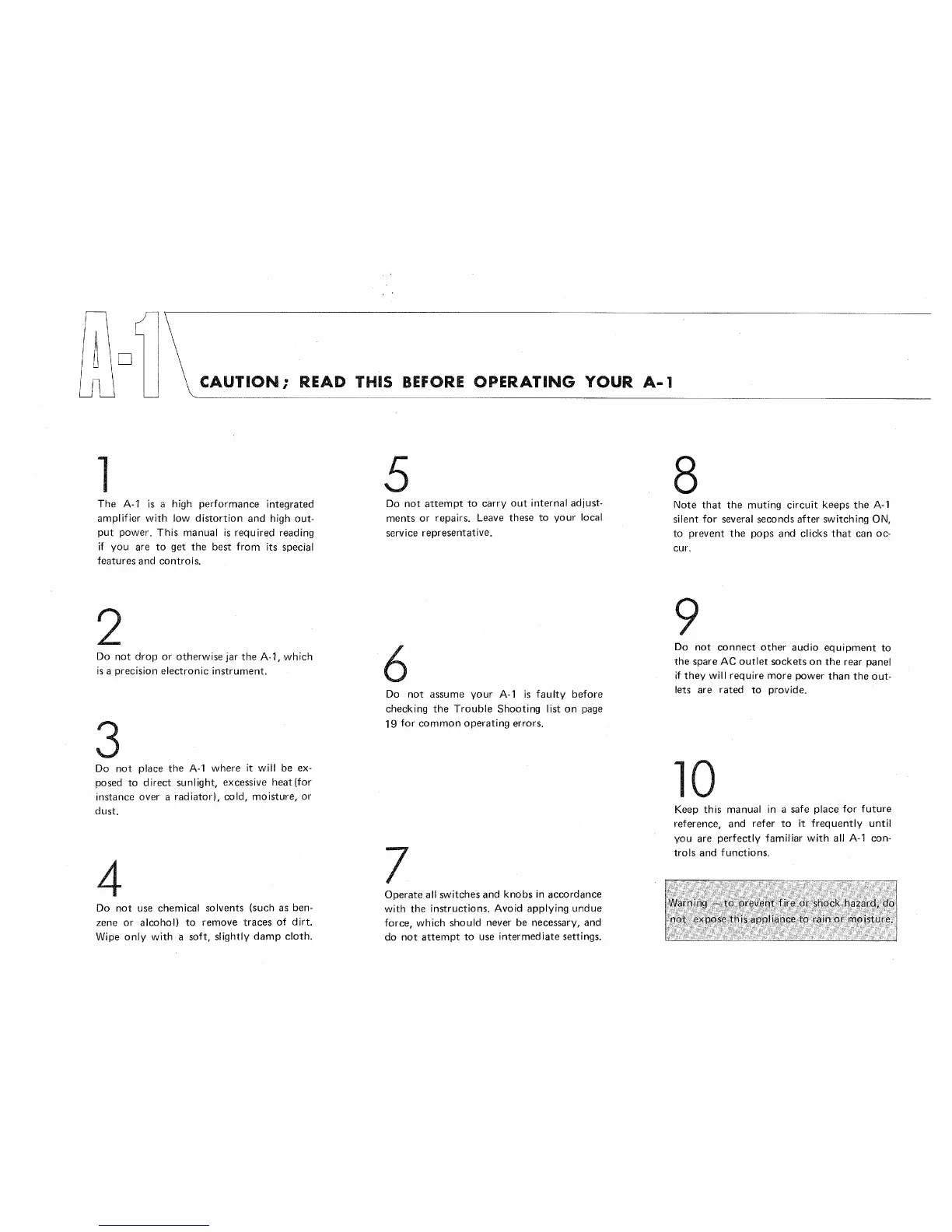 Yamaha A-1 - Caution: Before Operating Your A-1