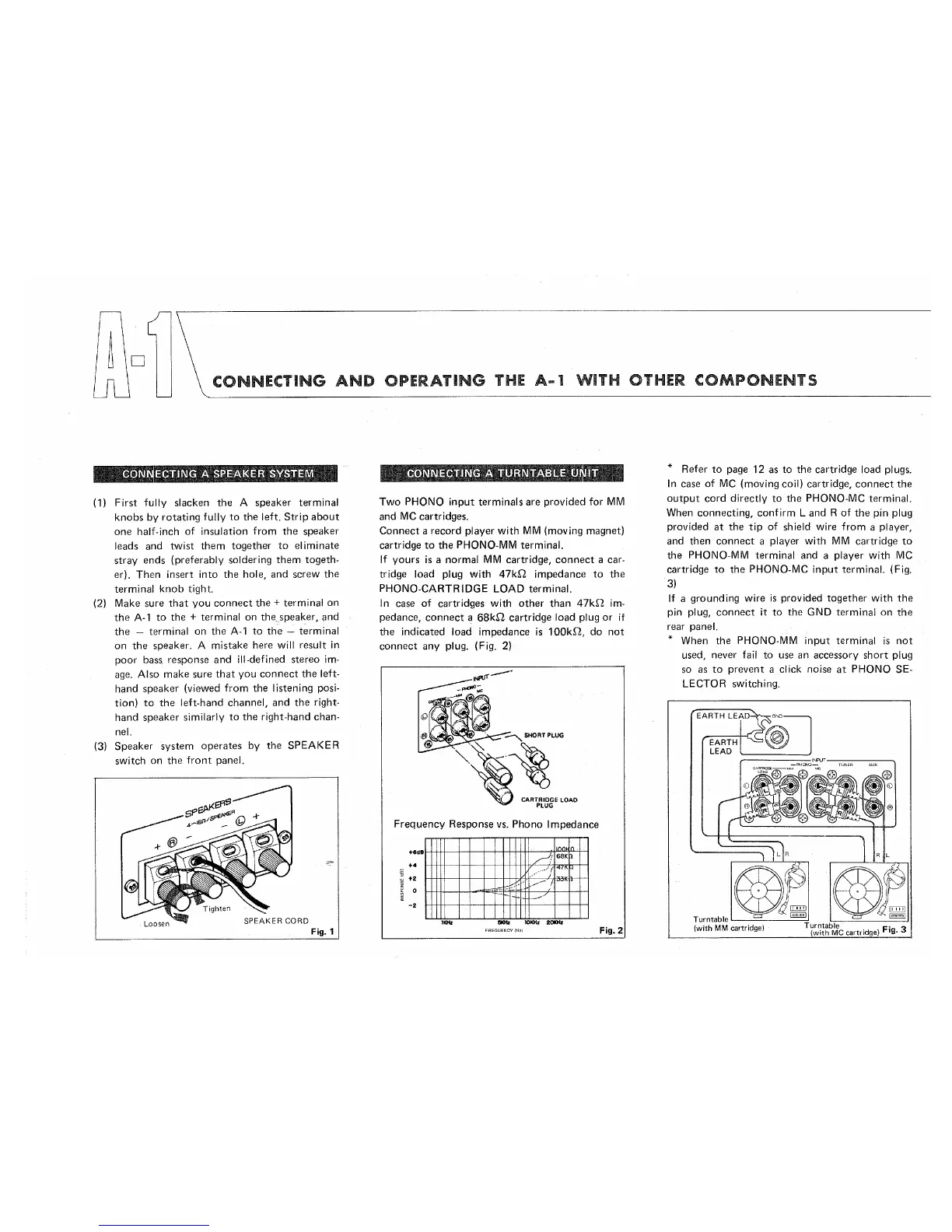 Yamaha A-1 - Connecting and Operating with Other Components; Connecting a Speaker System; Connecting a Turntable Unit