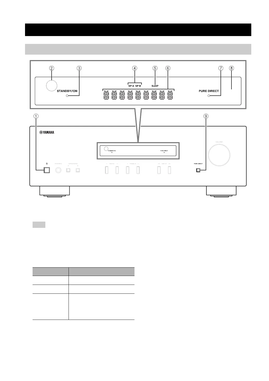 Lights up when the Pure Direct function is on.