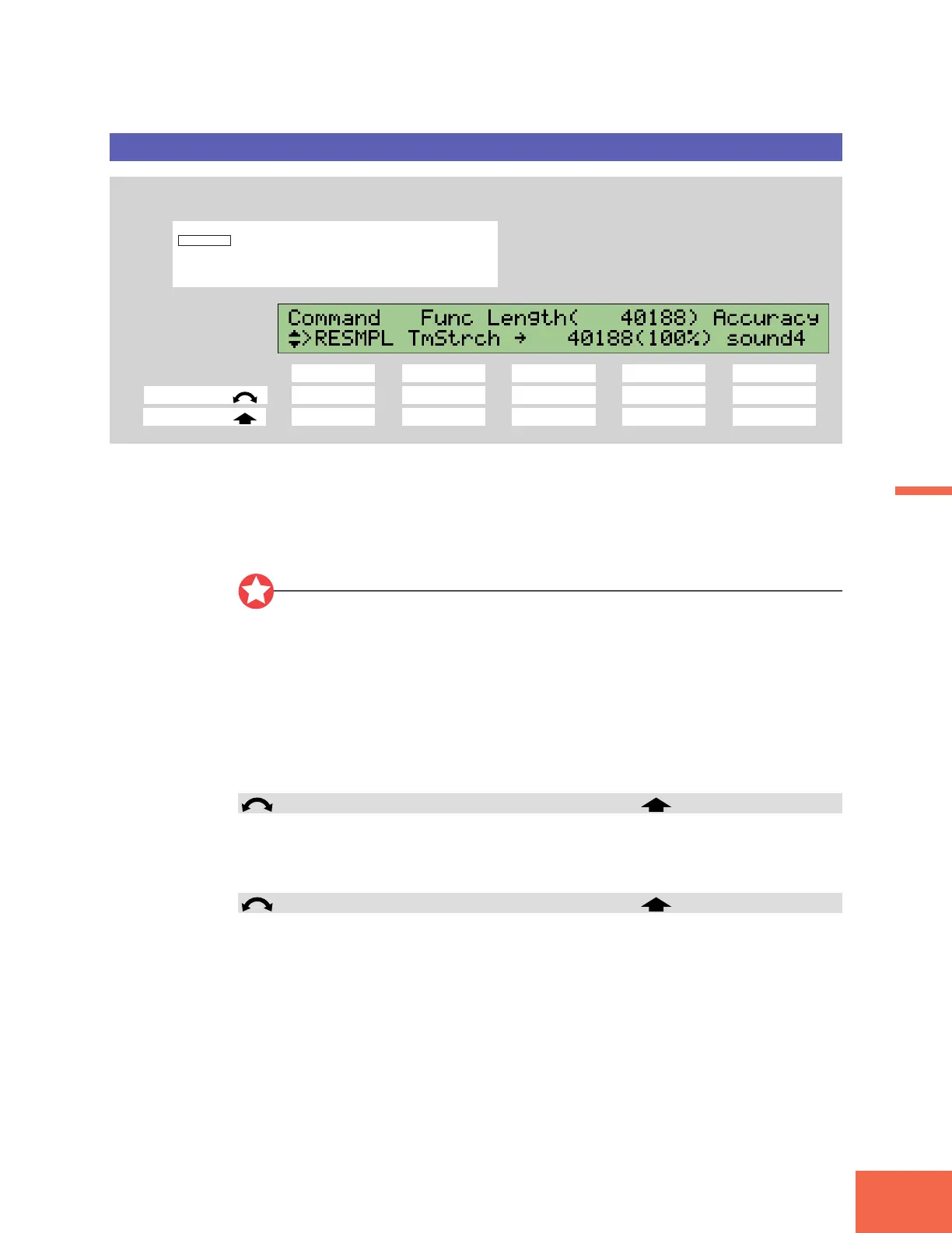 Press the COMMAND key, turn Knob 1 to select >RESMPL,