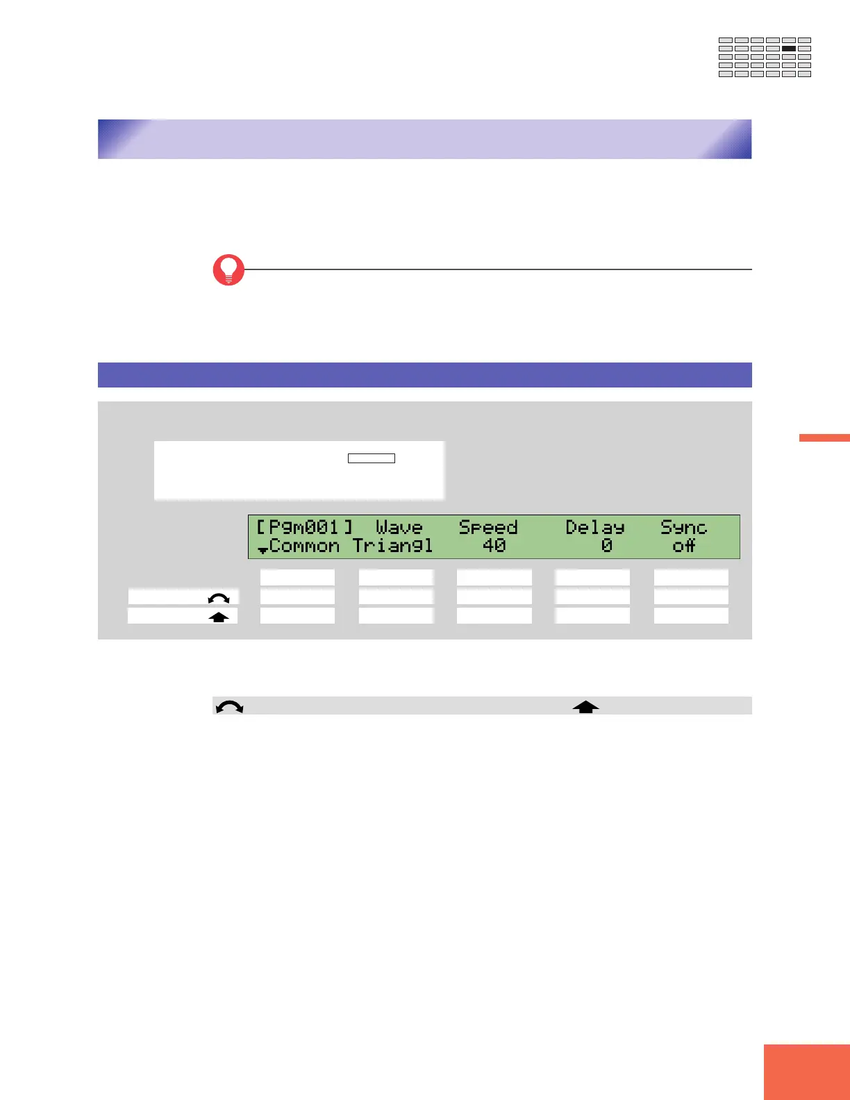 • Turn the knob to change to a different page within the LFO function. Available pages
