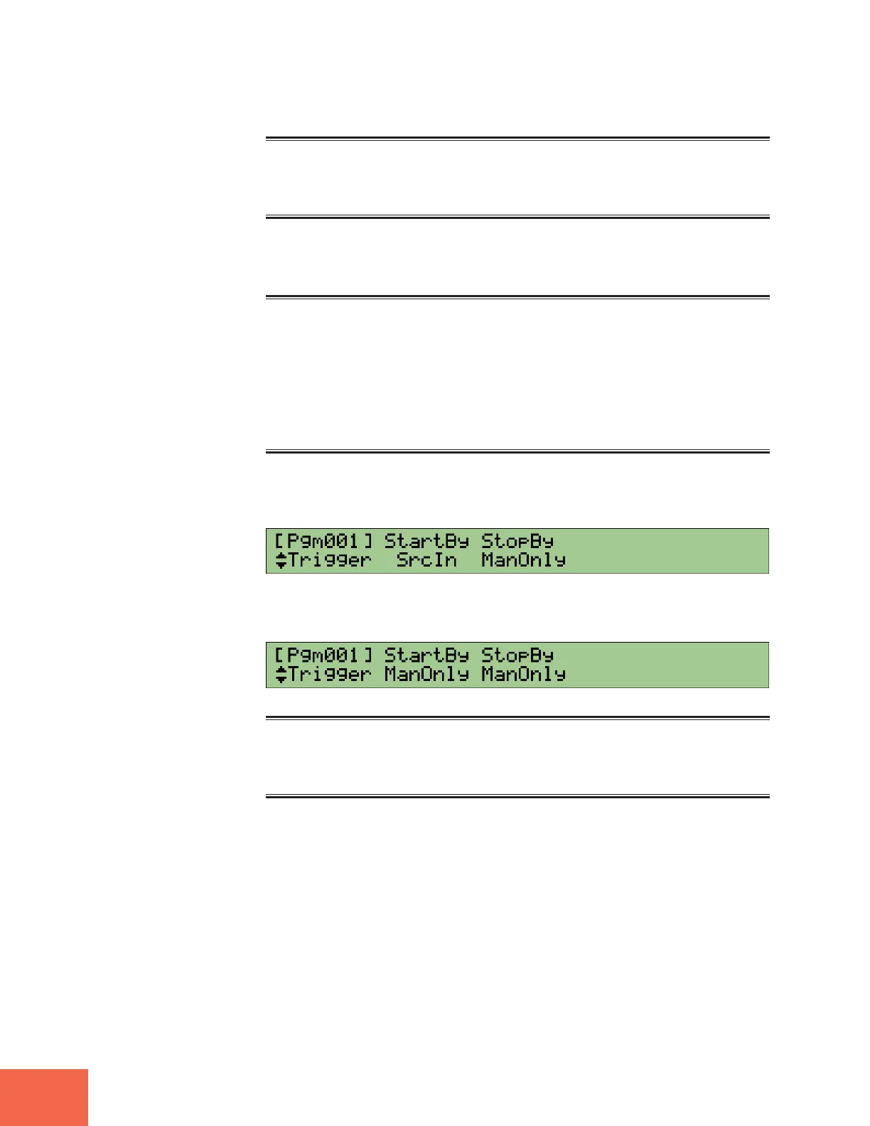 Turn Knob 2 to set StartBy to ManOnly (manual only).