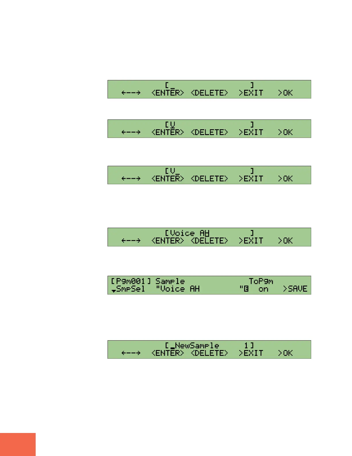 Press Knob 2 (<ENTER>) to enter the new character and move the cursor one