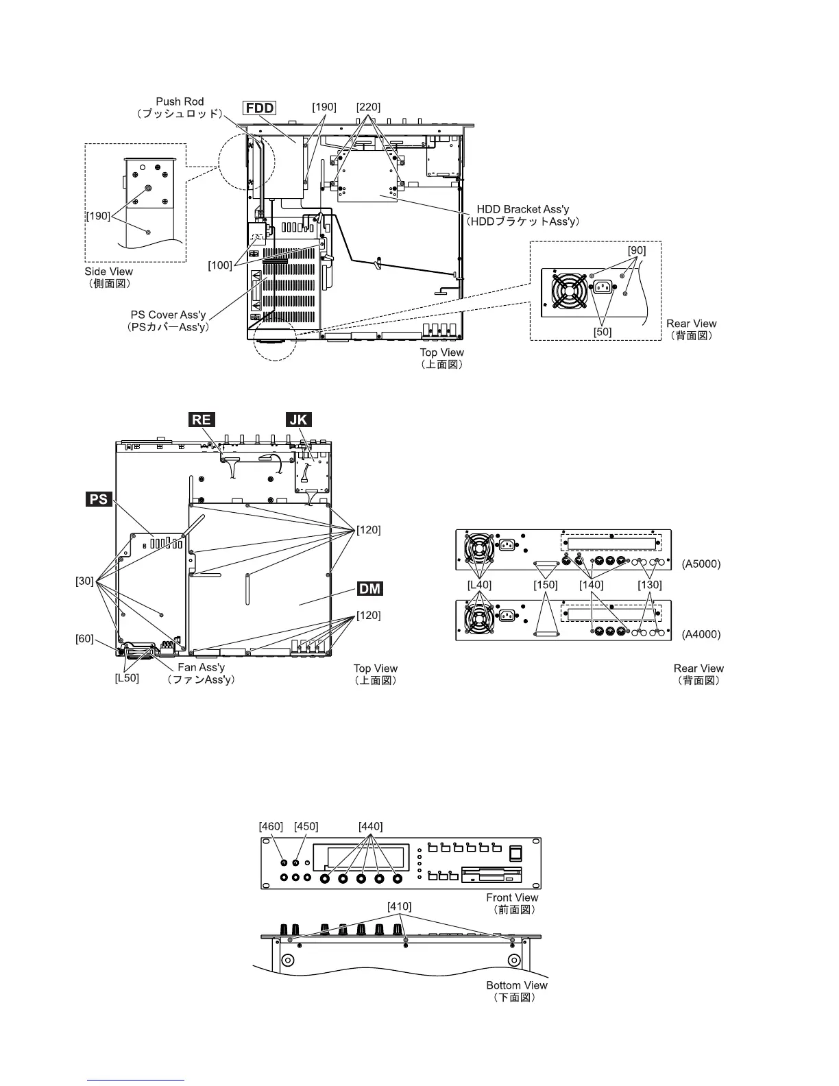 3-2 Remove the three (3) screws marked [410]. And remove the Front Panel from the Lower Case Assembly.
