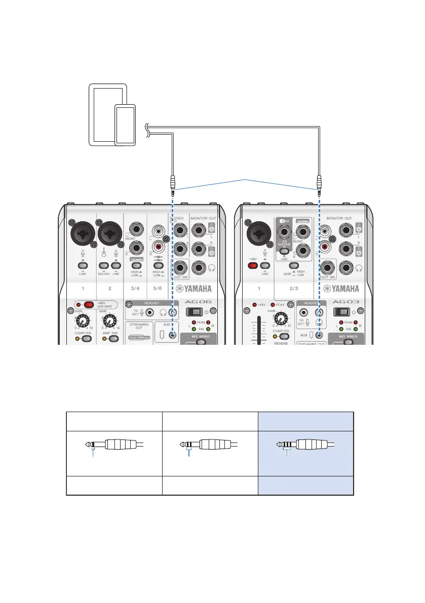 4 Using a 3.5 mm four-conductor stereo mini cable, connect the smartphone [P]