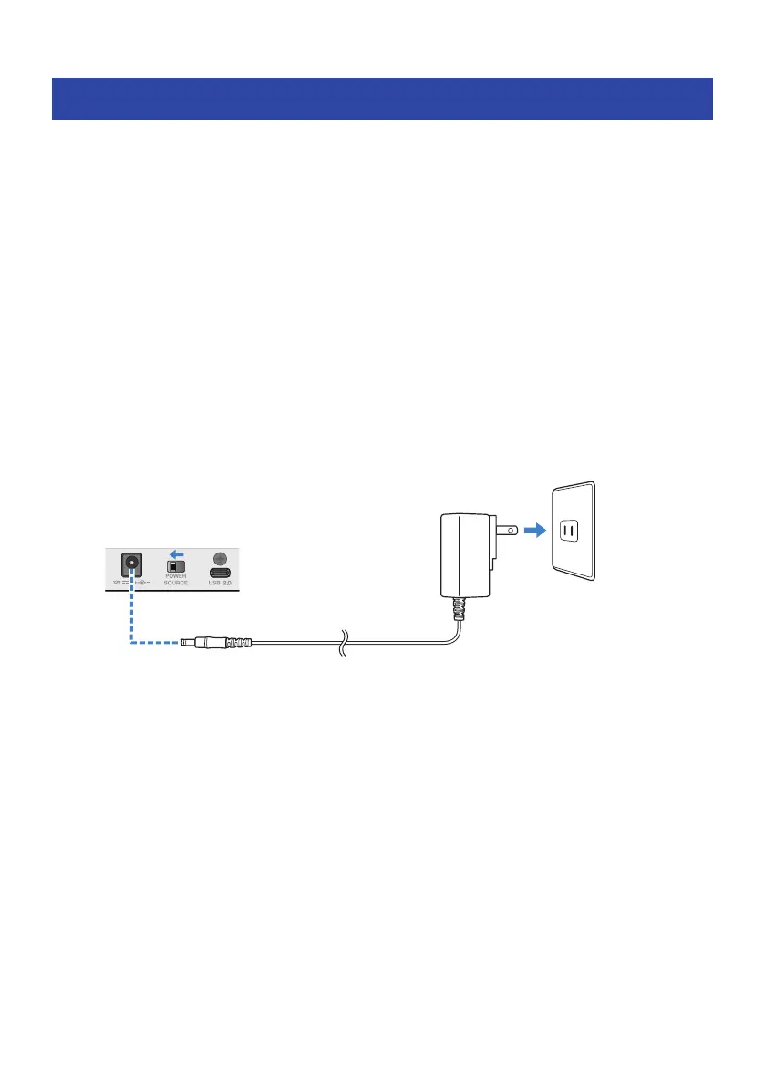 2 Connect the included AC adapter to the [12V] DC jack on the rear panel, and slide