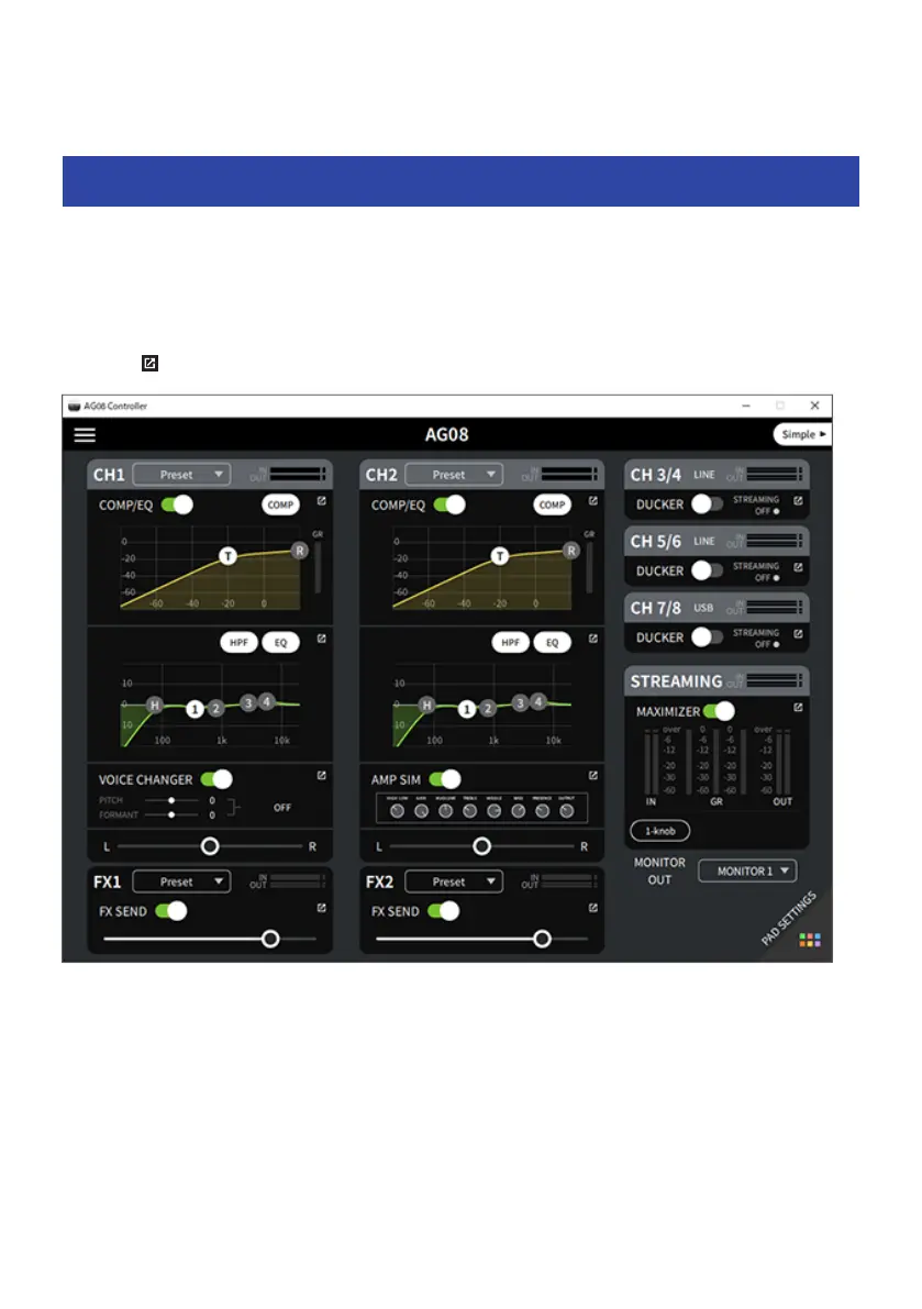 To make detailed settings for this product, use the AG08 Controller app. AG08 Controller is an intuitive