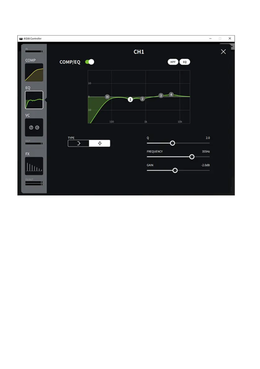 The screen shown below contains the detailed settings for the EQ.