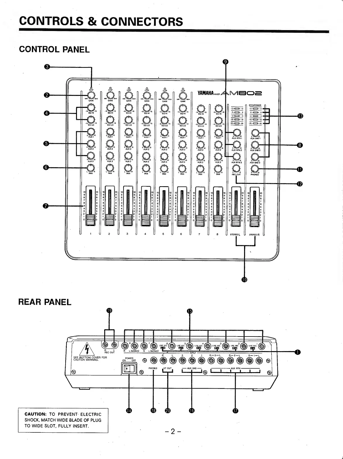 Yamaha AM802 - CONTROLS & CONNECTORS; Control Panel Overview; Rear Panel Overview