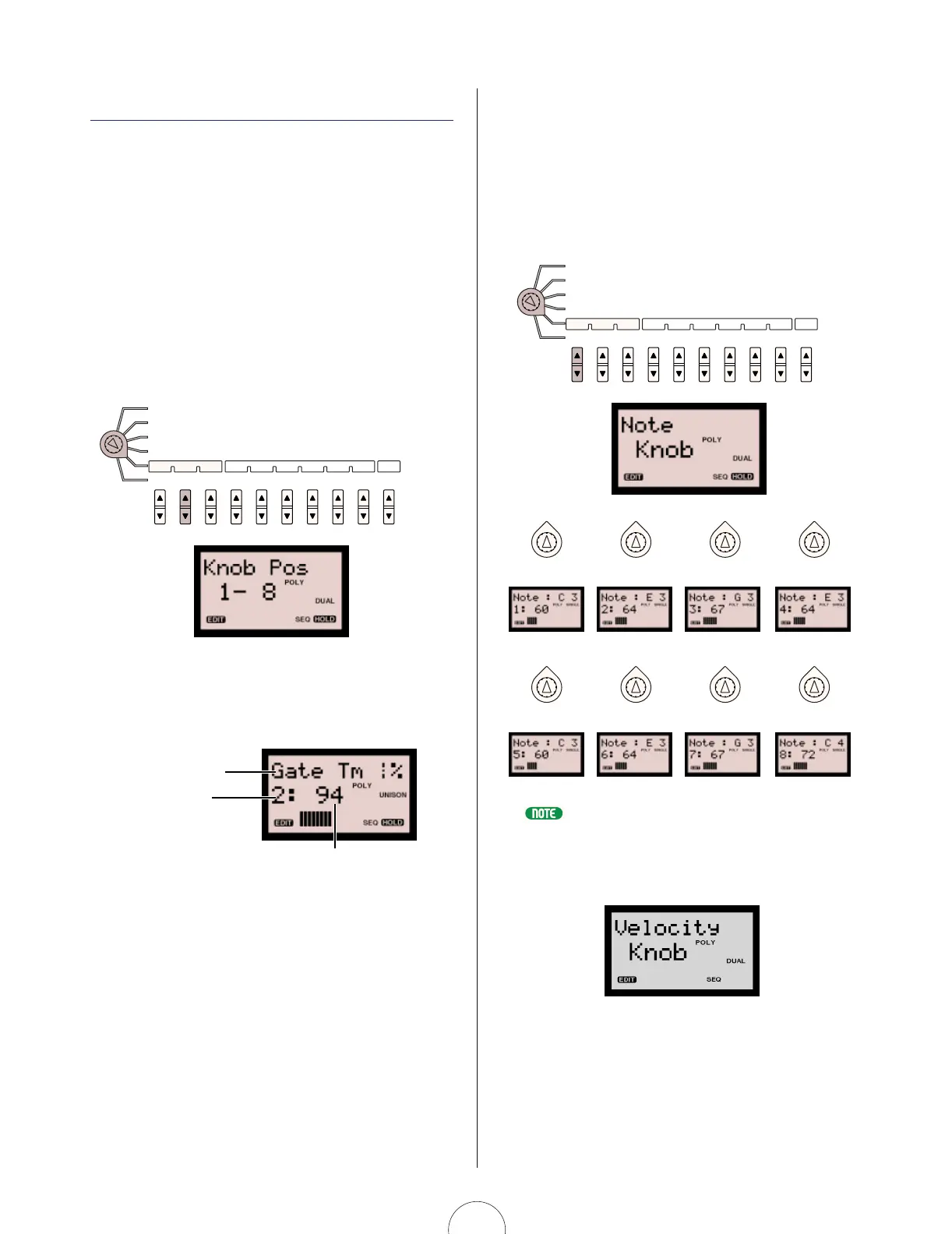 CONTROL knob is used to edit Note, Velocity, Gate Time