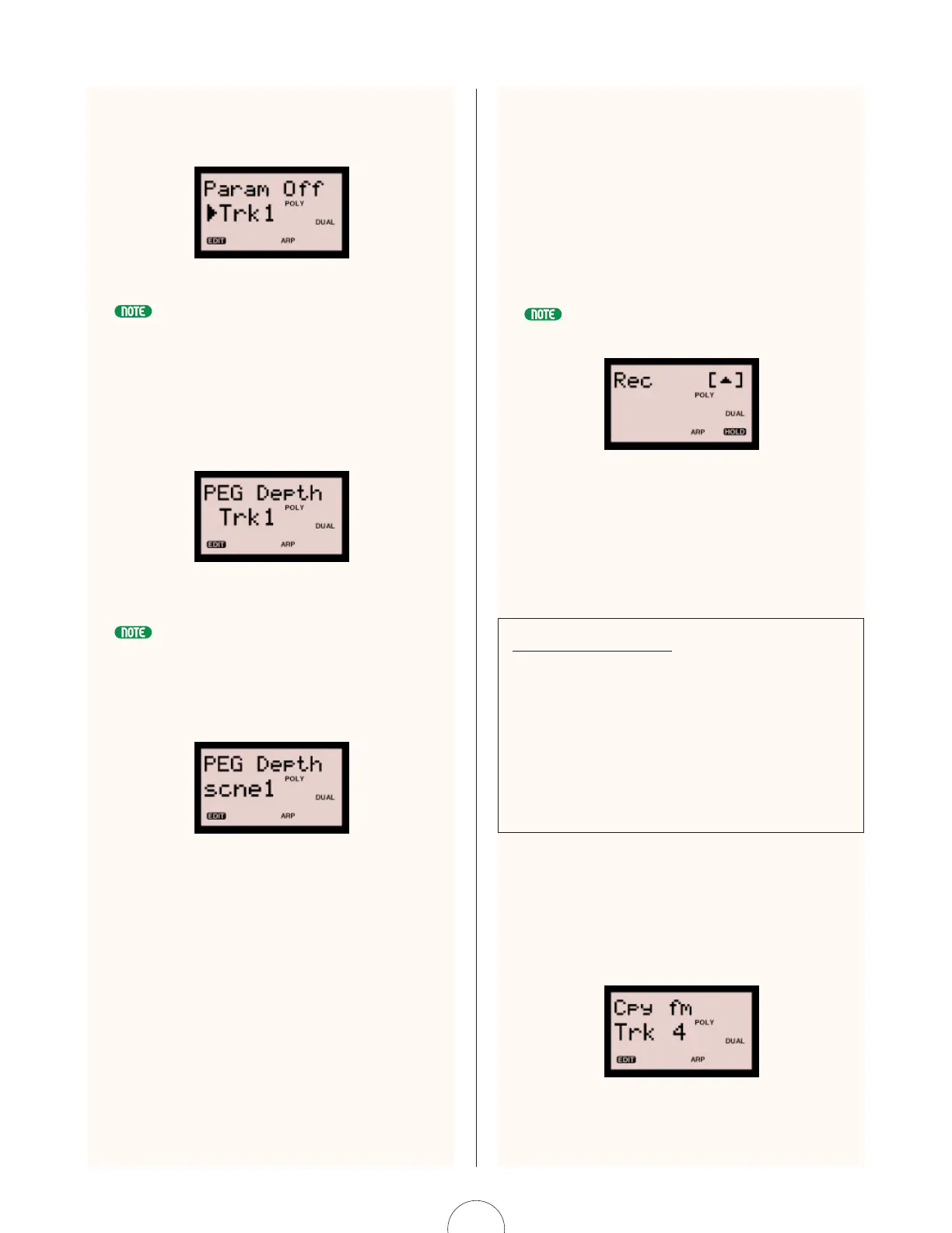 Settings: Trk 1 ~ Trk 4; (Voice) 1 ~ 128 Trk 1 ~ Trk 4