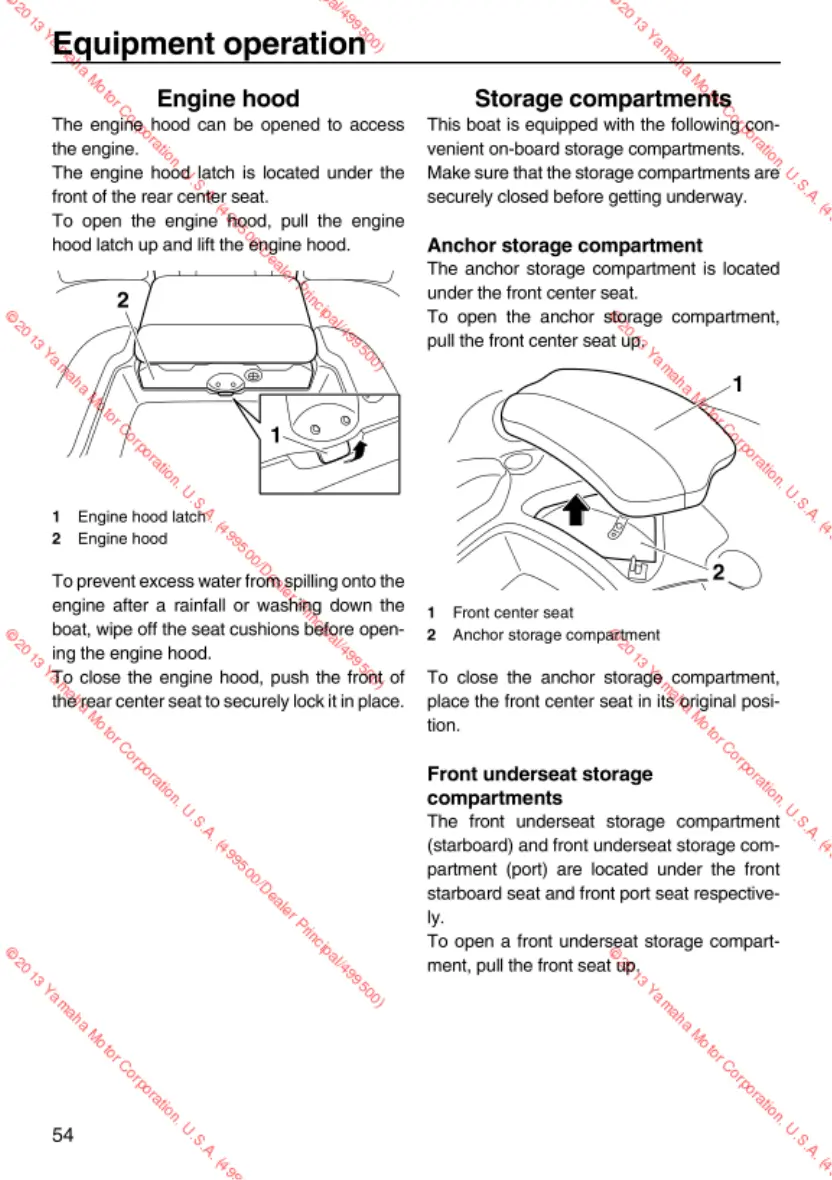 Yamaha AR192 - Engine Hood; Storage Compartments; Anchor Storage Compartment; Front Underseat Storage Compartments