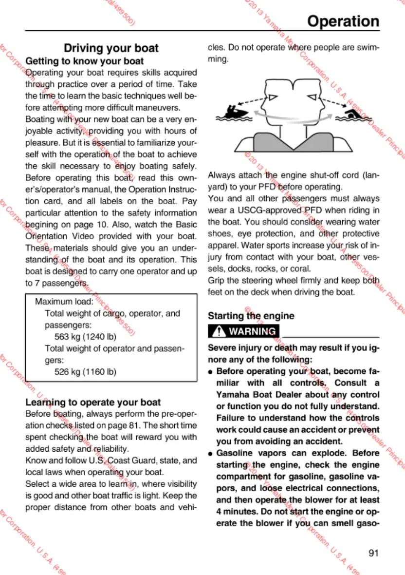 Yamaha AR192 - Getting to Know Your Boat; Learning to Operate Your Boat; Starting the Engine