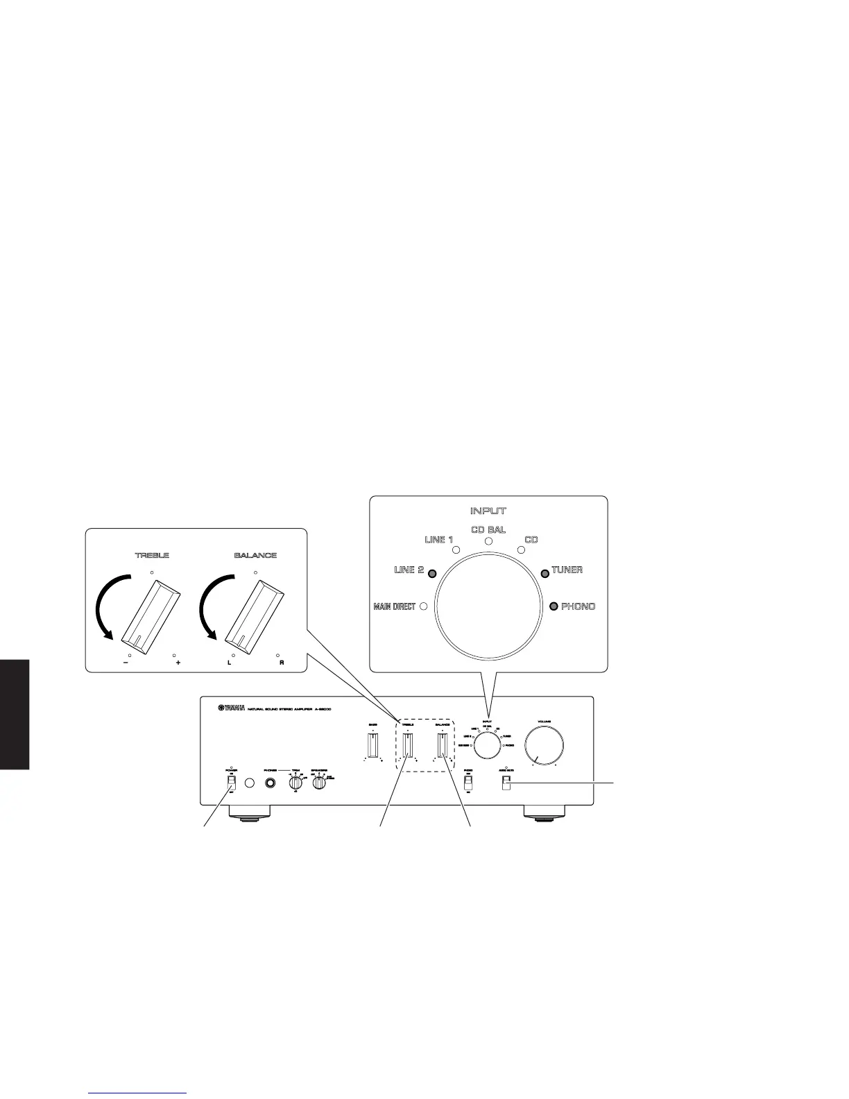"TREBLE" knob"POWER ON/OFF" switch "BALANCE" knob