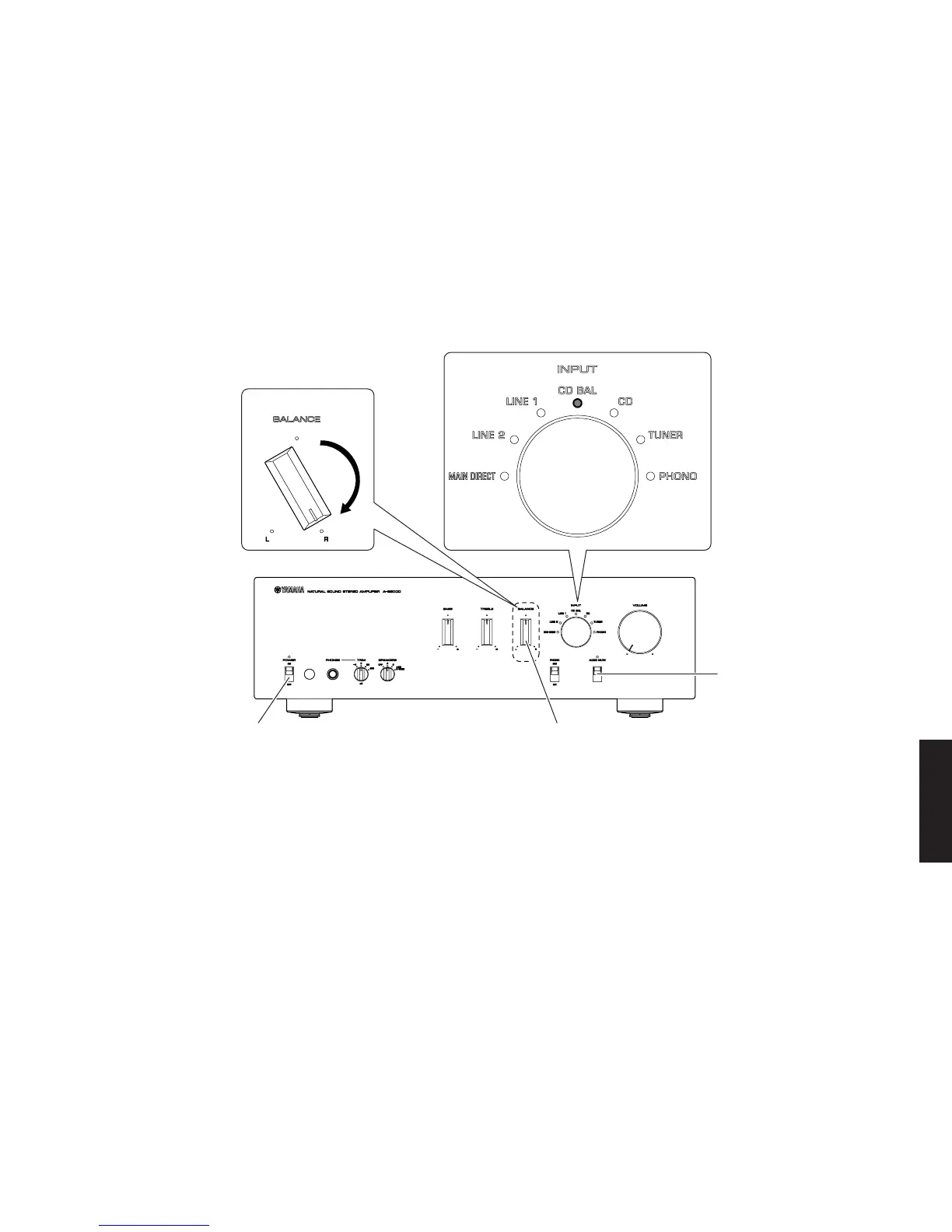 2. The INPUT selector LED “CD BAL” will light up