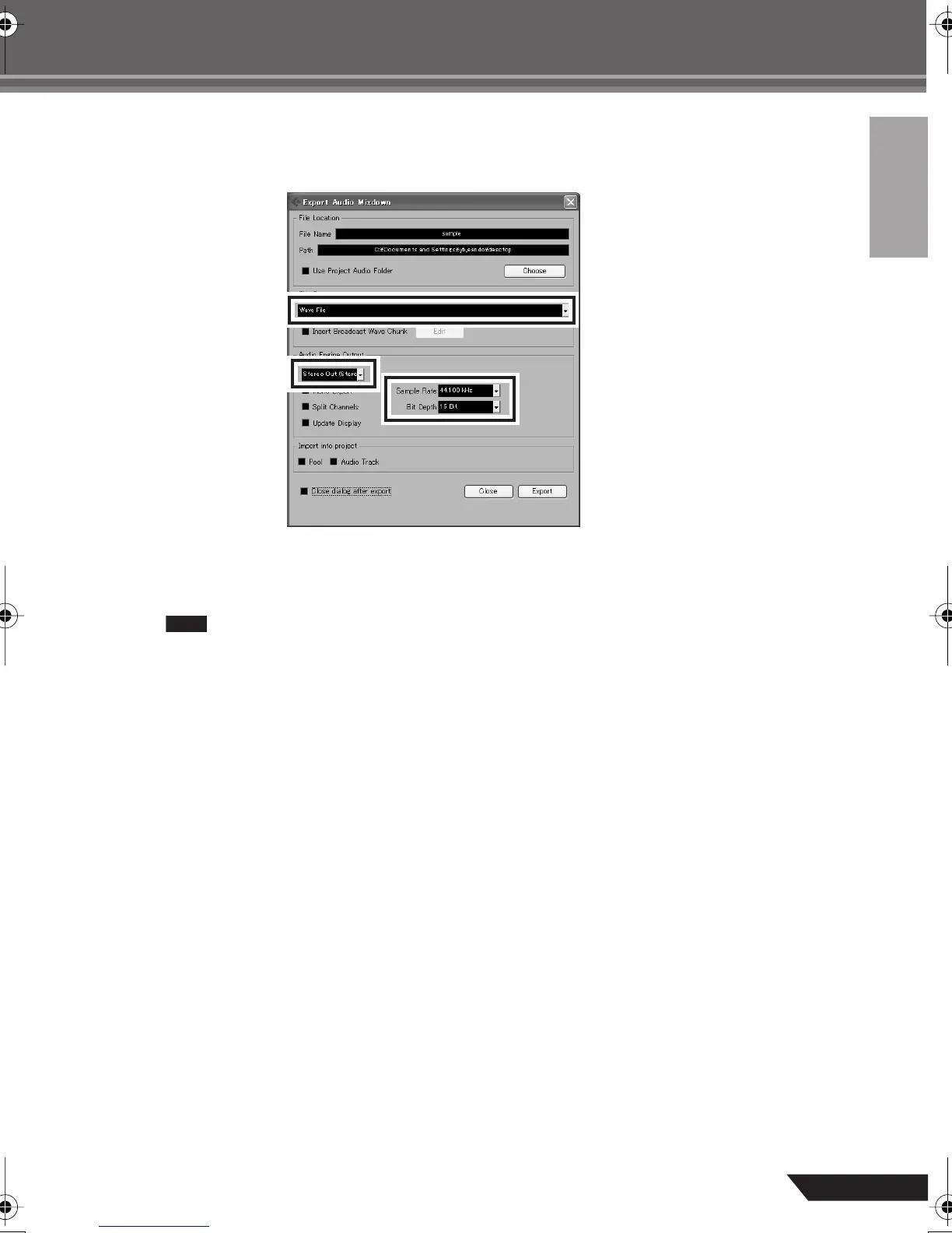 Files created by mixdown can be directly played back using the Windows Media Player, or